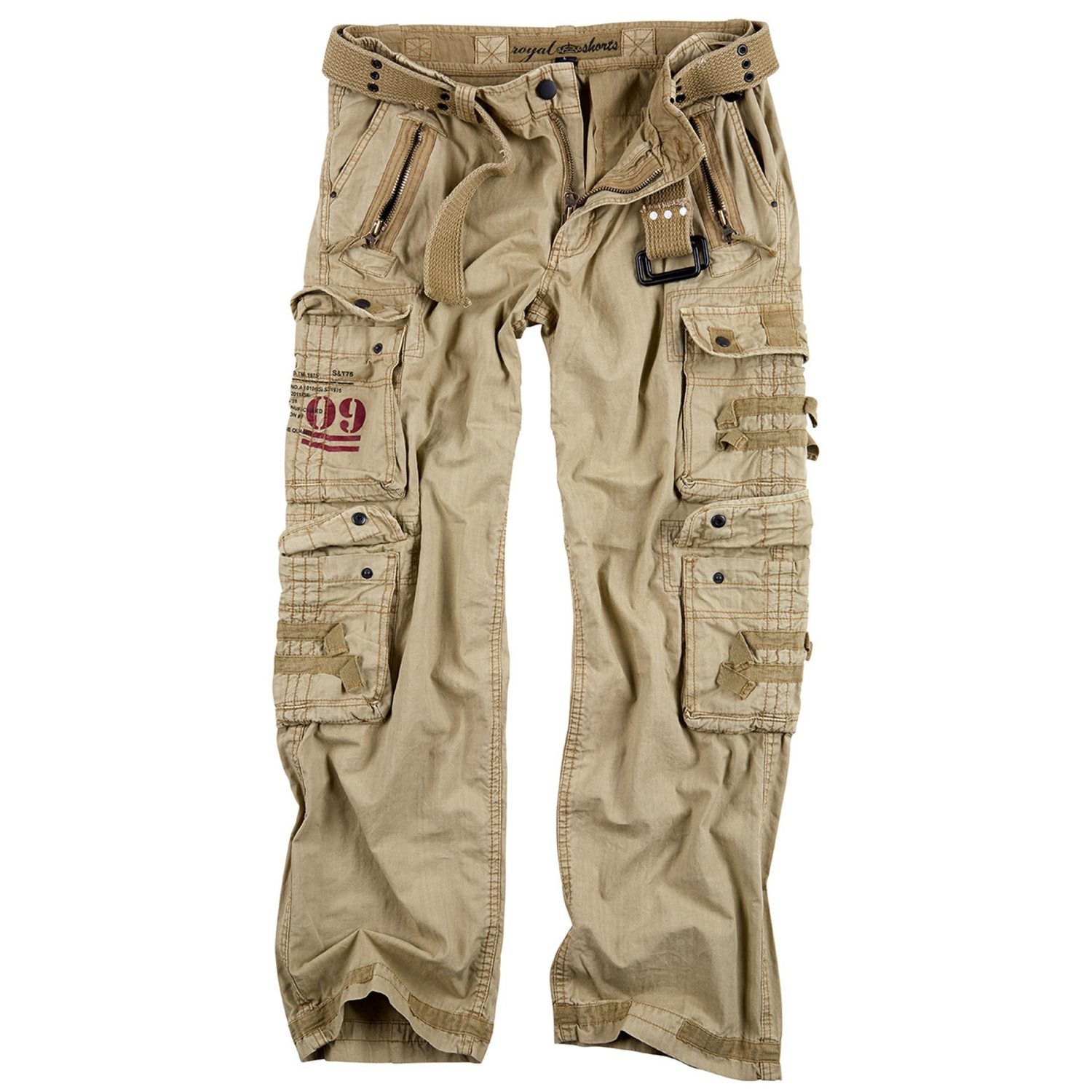 Pantalon élégant en coton confortable, conçu pour un usage quotidien. Ils se ferment à l'aide d'une combinaison classique de bouton et de fermeture éclair, et sont dotés d'une bande de serrage sur les côtés de la taille permettant d'ajuster le tour de taille. Les pantalons sont également livrés avec une large ceinture en tissu au look « vintage » (aspect délavé). À la taille, vous trouverez deux poches classiques pour les mains, qui sont équipées à l'extérieur de petites poches fermées par des fermetures éclair. Au niveau des cuisses, vous trouverez quatre autres poches spacieuses, qui se ferment par des rabats à boutons-pression. Les deux dernières poches se trouvent sur les fesses. Le bas des jambes est renforcé par une double couche de tissu pour une meilleure résistance.