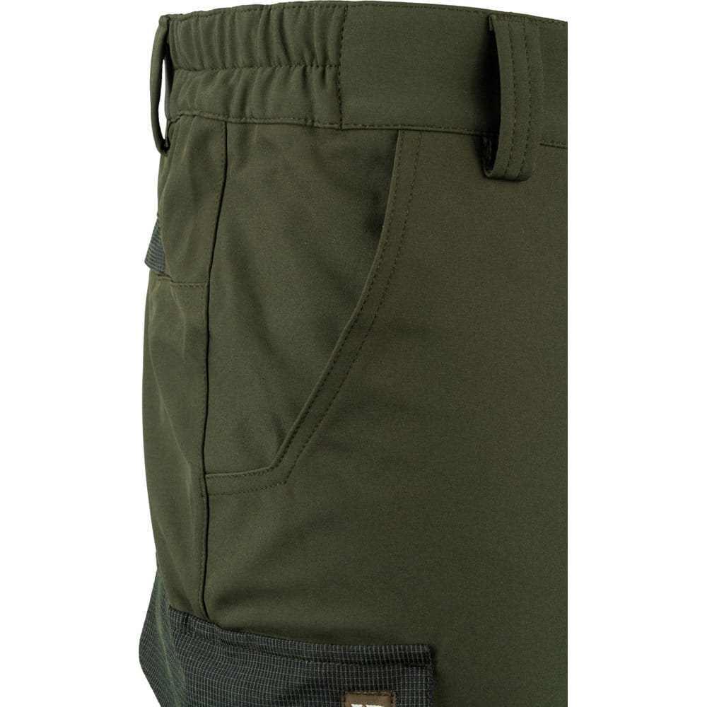 Pantalon softshell respirant. Il est confectionné dans un mélange de matières souples qui protège du vent et de la pluie légère. Le pantalon dispose de six poches et de genoux contrastés de couleur verte. Plus d'informations