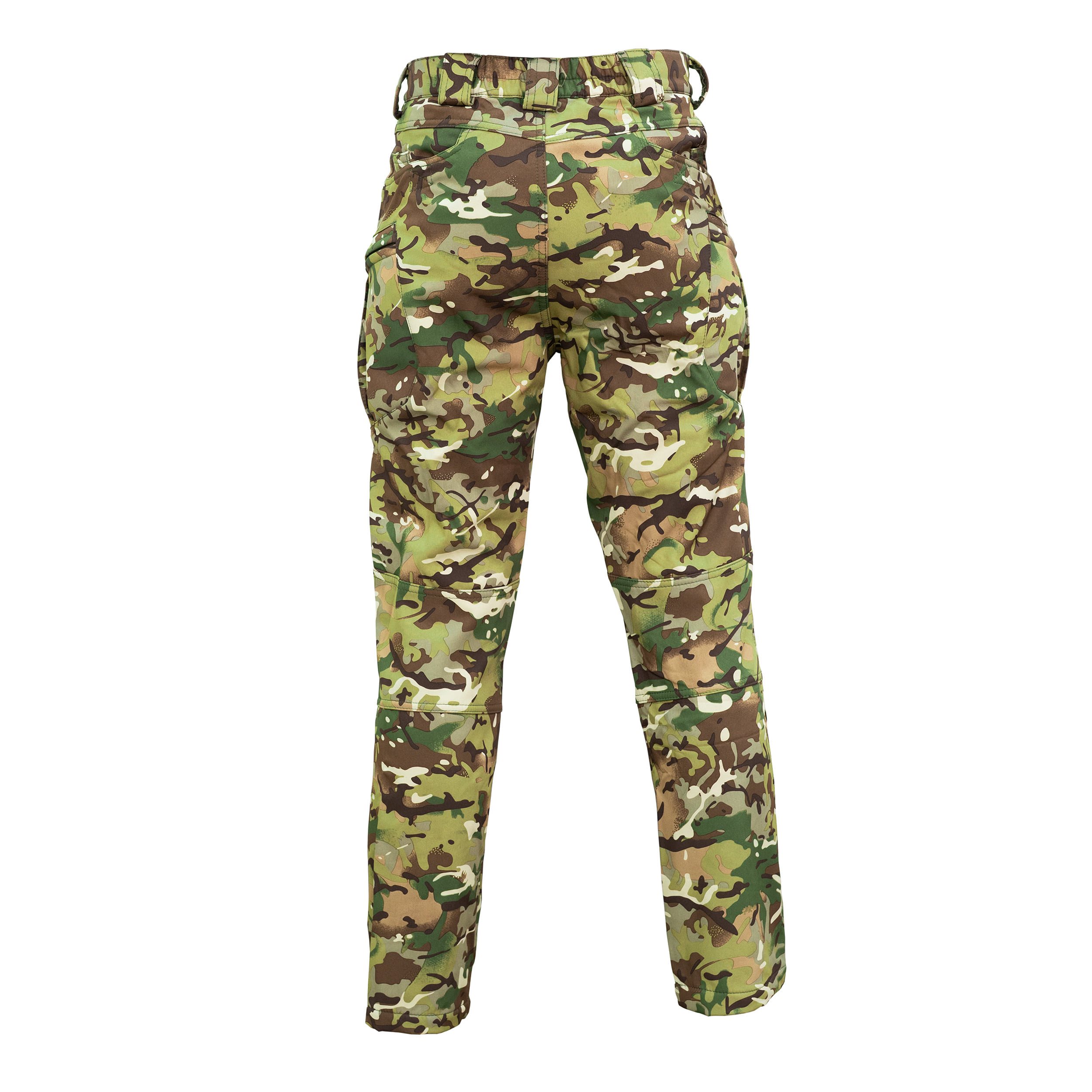 La taille du pantalon est partiellement élastique et équipée de passants pour des ceintures jusqu'à 6 cm de large. De plus, les passants avant sont dotés de triangles en plastique qui permettent d'accrocher des mousquetons et d'autres équipements supplémentaires. La fermeture du pantalon est assurée par un bouton métallique et une fermeture éclair métallique. Les poches pour les mains ont un bord renforcé et l'intérieur est partiellement doublé de polaire chaude. Les poches cargo sur les cuisses sont accessibles par une fermeture éclair, les poches latérales fermées par un rabat à velcro peuvent contenir une lampe de poche ou un petit téléphone. Les poches arrière sont en partie sécurisées par une bande de velcro et contiennent un petit compartiment élastique pouvant accueillir par exemple un stylo.