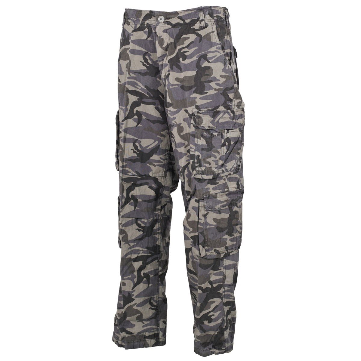 Pantalon de qualité au style VINTAGE délavé. Il se ferme à l'aide d'une combinaison classique de braguette à fermeture éclair et de bouton. Le pantalon dispose de deux poches pour les mains et de quatre poches cargo profondes sur les jambes. La dernière paire de poches se trouve à l'arrière du pantalon. Les passants du pantalon peuvent accueillir des ceintures d'une largeur maximale de 55 mm.
