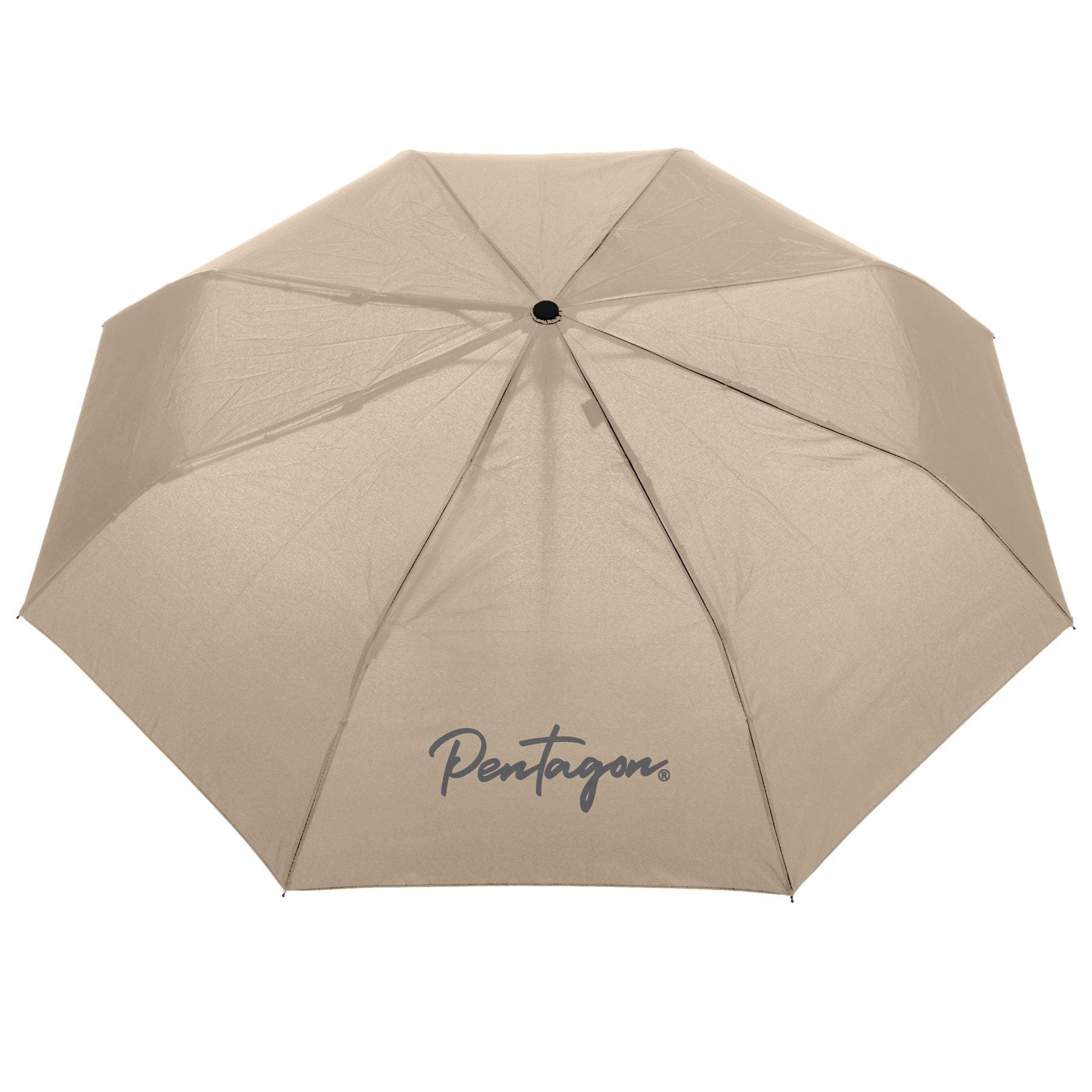 Parapluie à ouverture automatique avec revêtement en téflon. La toile est fabriquée en polyester résistant aux UV SPF80 et est renforcée afin de conserver sa forme et de résister à des vents violents. L'ouverture s'effectue à l'aide d'un bouton situé dans la poignée, qui est en partie fabriquée en bois et ornée du logo de la marque PENTAGON. Une fois replié, le parapluie ne mesure que 27,5 cm, ce qui lui permet de se glisser facilement dans la plupart des sacs à dos ou sacs. Il est bien entendu livré avec une housse de transport en tissu.