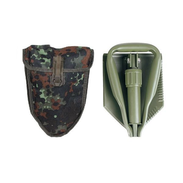Pelle pliante/pelle à neige d'origine. Utilisée par l'armée allemande (Bundeswehr). Acier et duralumin de haute qualité. Très pratique, utilisable comme hache et, grâce à ses deux bords dentés, comme outil multifonction (houe, scie, marteau, etc.). Plus d'informations