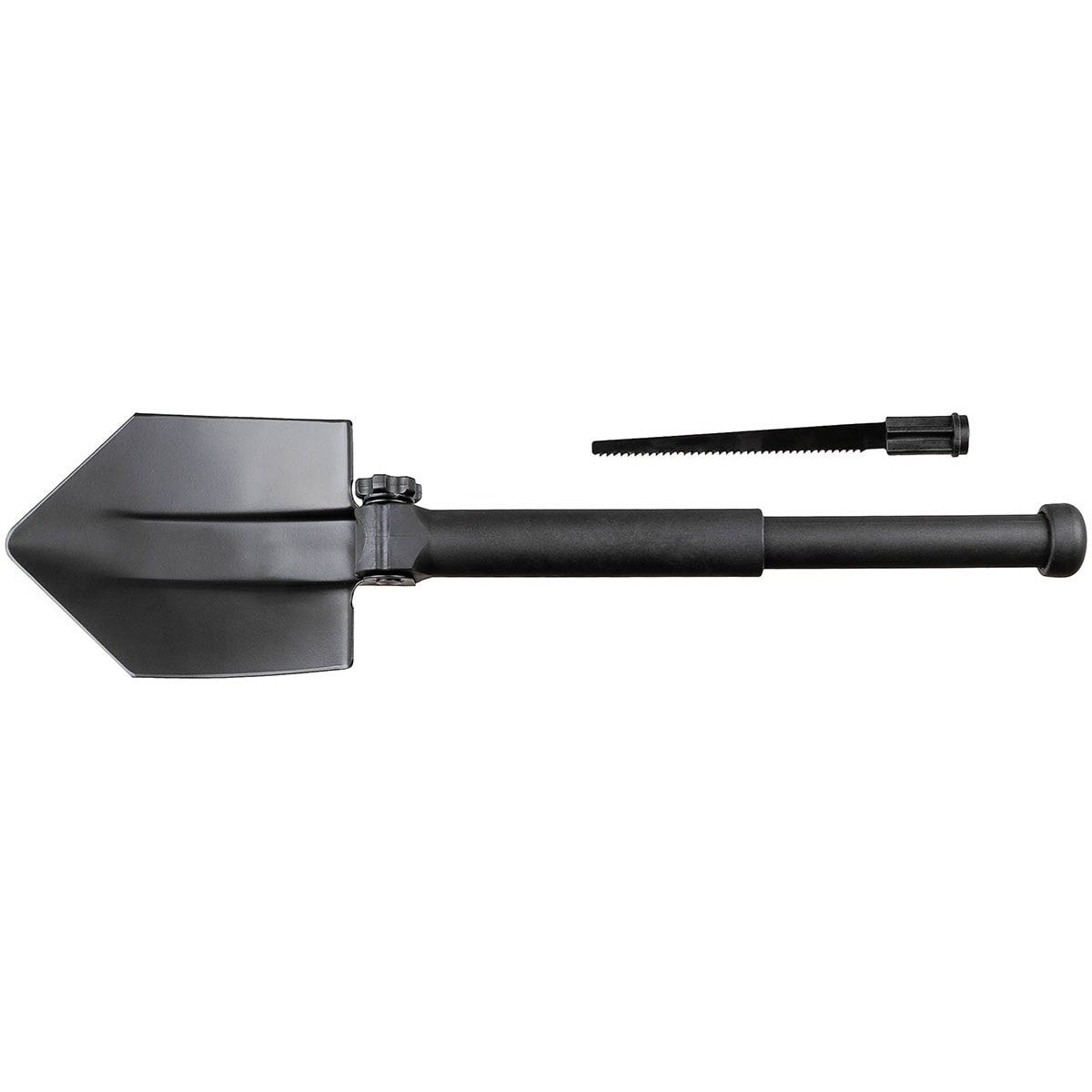 Pelle pliable d'une longueur totale de 64 cm. Scie rangée dans le manche creux, se fixe à l'extrémité du manche si nécessaire. Longueur de la scie : 17 cm. Poids de la pelle : 770 g. Plus d'informations