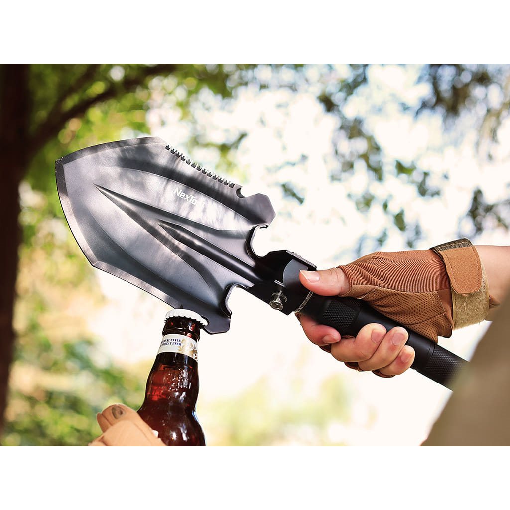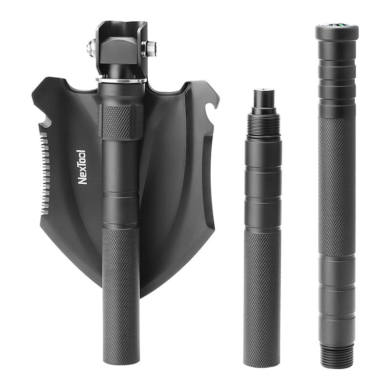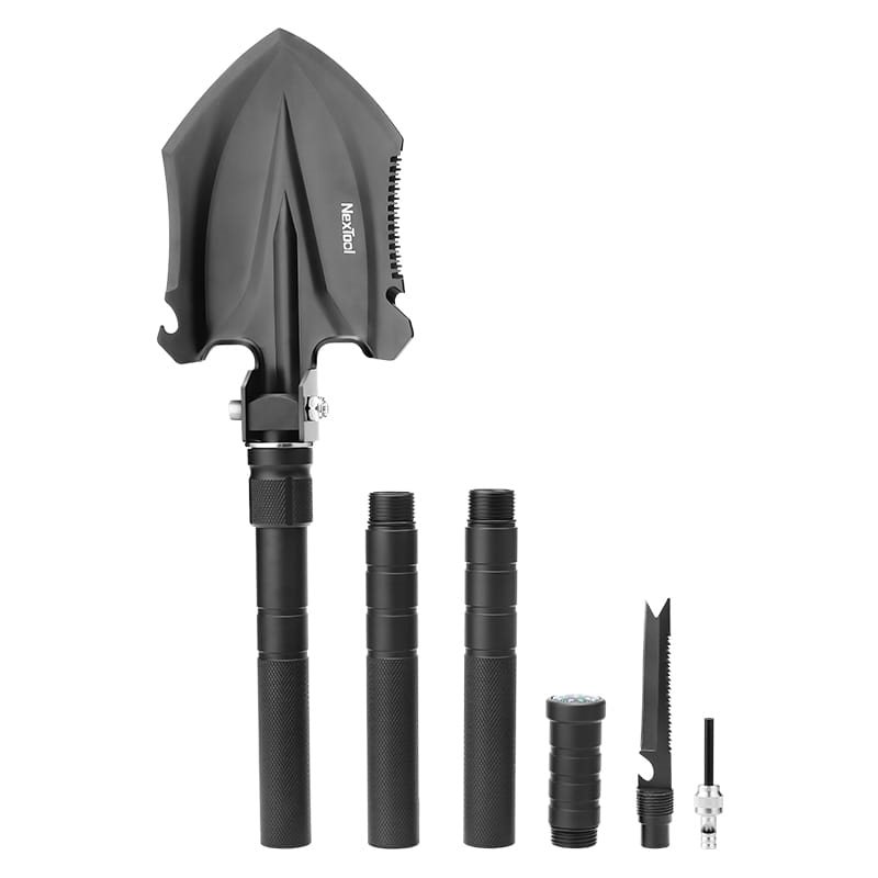 Pelle multifonctionnelle de taille moyenne, adaptée au camping, au jardinage léger ou à la randonnée de plusieurs jours. La lame de la pelle et les outils de travail sont fabriqués en acier inoxydable 20Cr13 d'une dureté de 47-50 HRC. Une alliage d'aluminium résistant a été utilisé pour la fabrication des segments vissés du manche. Grâce à son système de verrouillage réglable, l'outil peut être utilisé comme pelle, houe ou crochet d'ancrage. La pelle est livrée avec un étui pour la lame et un étui séparé pour les segments du manche et les outils.