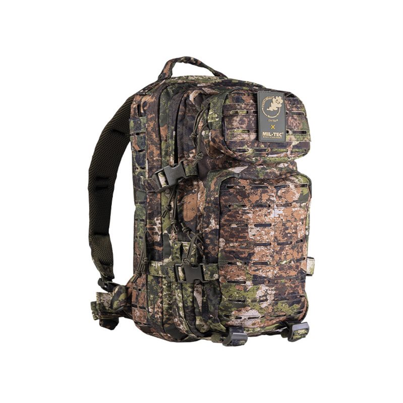 Sac à dos tactique de petite taille d'un volume d'environ 20 litres. Le système de fixation MOLLE spécialement conçu, avec des œillets découpés au laser dans le tissu, vous garantit une fixation plus rapide et plus facile d'autres étuis MOLLE.