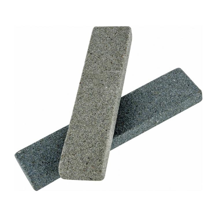 Pierres pour l'affûtage des lames de couteaux. Lot de 2 pièces, l'une plus fine et l'autre plus grossière. Dimensions : 7 x 1,5 x 0,5 cm. Plus d'informations