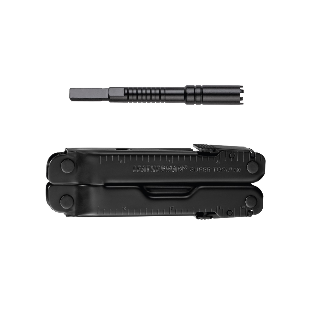 Le couteau multifonctions Super Tool 300M est le plus grand et le plus lourd des outils destinés à un usage militaire produits par la société LEATHERMAN. Le Super Tool 300M est de construction robuste et équipé de tous les outils essentiels. Le manche et les outils sont fabriqués en acier inoxydable 420HC, recouvert d'un revêtement Cerakote™ à base de céramique qui offre une protection durable contre la corrosion, l'abrasion et autres dommages mécaniques. Le revêtement n'a pas non plus épargné les outils des pinces. Il s'agit du revêtement BLACK OXIDE, idéal pour les situations où la divulgation de votre position pourrait avoir des conséquences fatales. Ce revêtement est particulièrement adapté aux militaires, car il réduit considérablement les reflets et les réflexions.