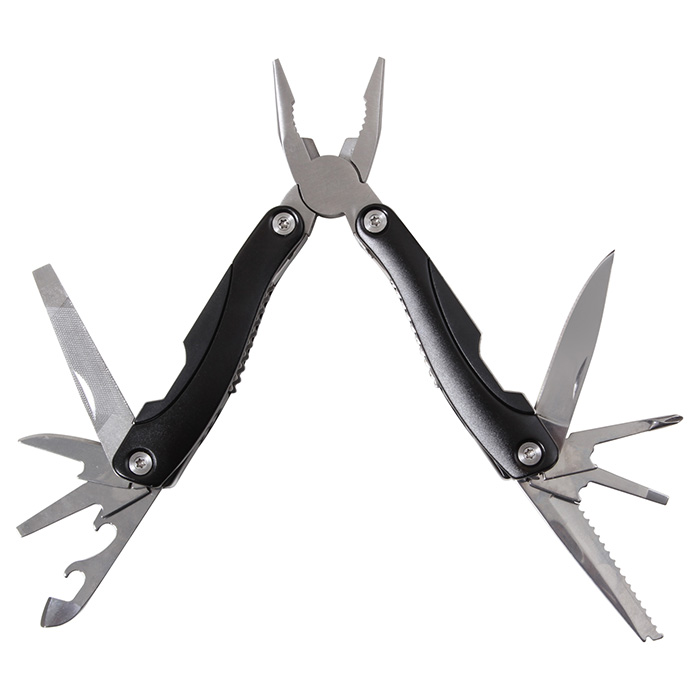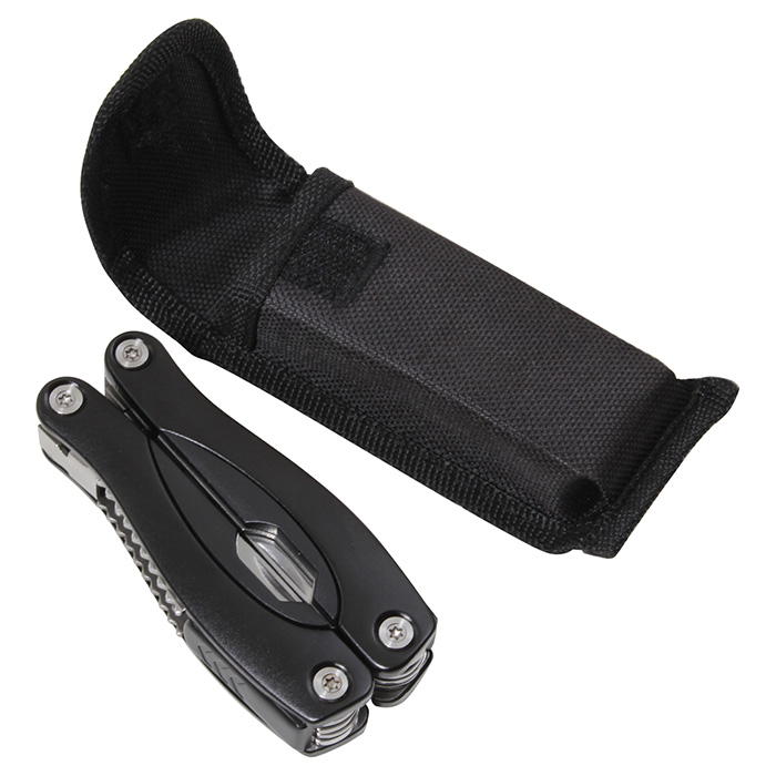 Pince multifonctionnelle dans un étui en nylon noir. Longueur : dépliée 16 cm, repliée 10 cm. Plus d'informations