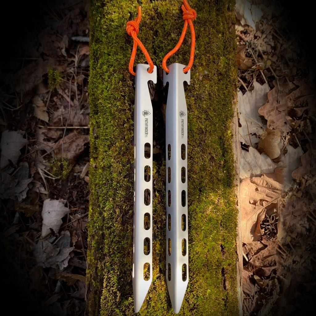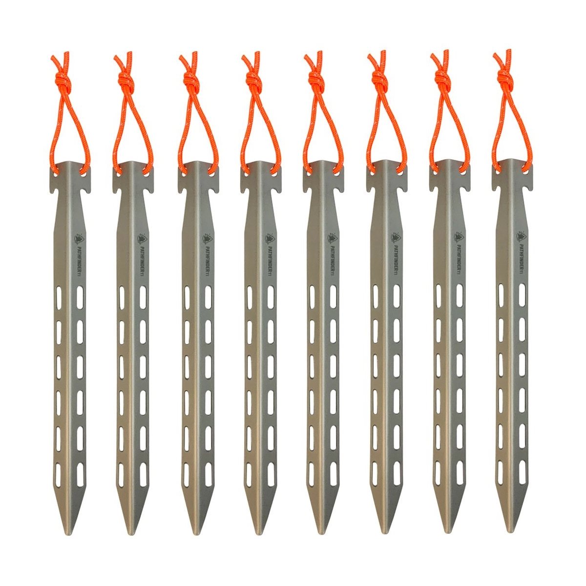 Piquets de tente légers et extrêmement résistants, fabriqués en titane TA2, qui ne rouille pas et offre une résistance supérieure d'un tiers à celle de l'acier pour un poids deux fois plus léger. Les piquets sont équipés de cordons réfléchissants et sont livrés avec un sac de transport en nylon.