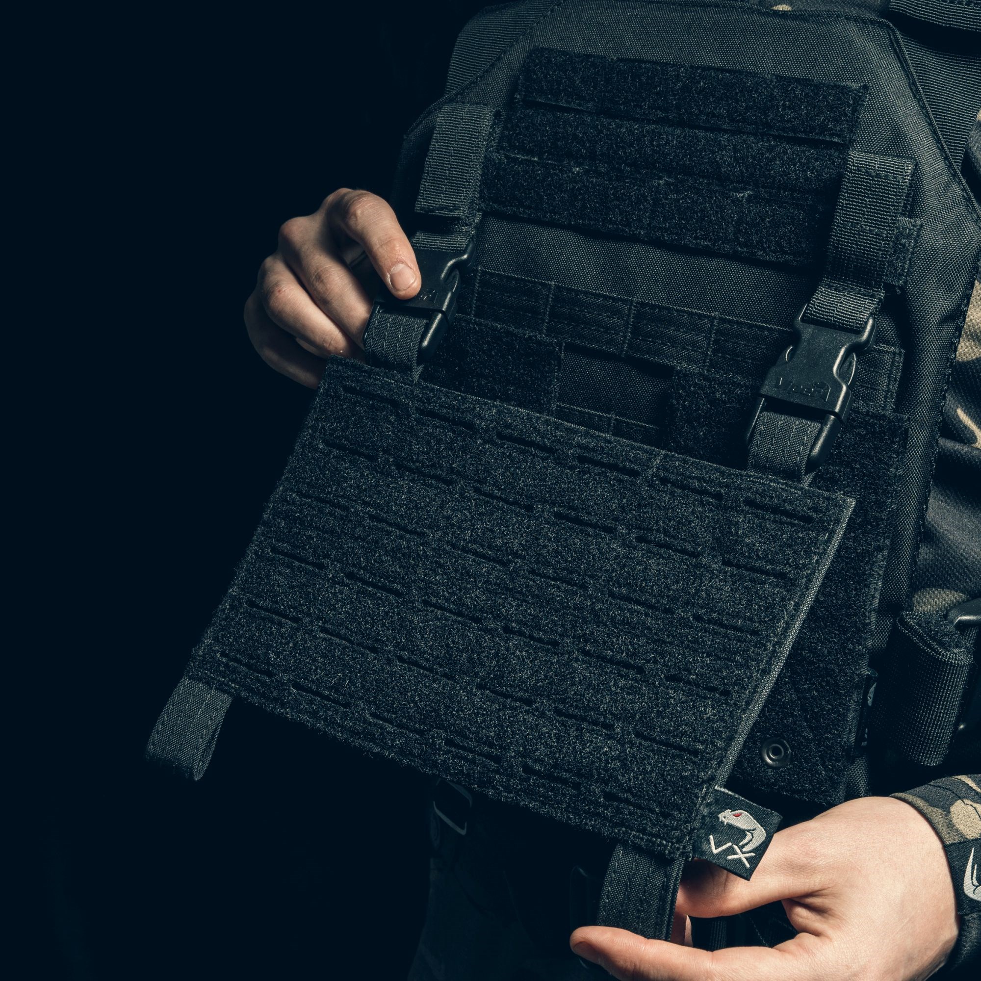 Panneau avant/rabat séparé conçu principalement pour le porte-plaques VX Buckle Up. Avec fixation modulaire standard PALS/MOLLE et velcro pour la fixation de pochettes compatibles. Convient si vous souhaitez alterner des rabats de différentes configurations pour différentes armes ou situations. Peut également être utilisé sur des gilets d'autres fabricants si l'écartement des boucles de fixation Fastex est identique.
