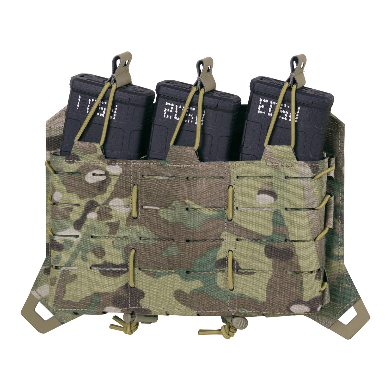 Plateforme avant supplémentaire avec trois pochettes pour chargeurs de fusils de type AR, AK et SR. Une fois installée sur le gilet, cette plateforme remplace la plateforme d'origine. Plus d'informations