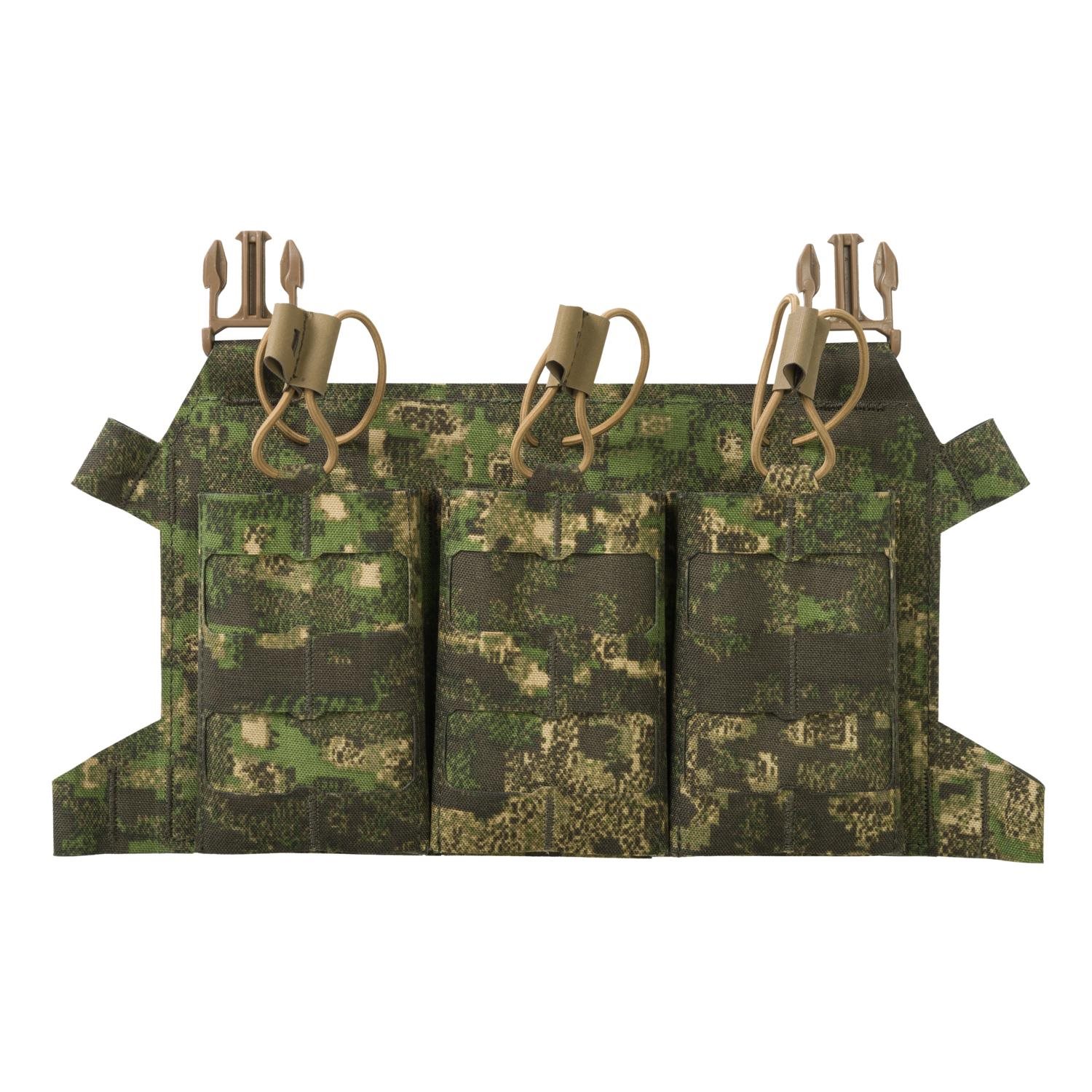 Plateforme avant supplémentaire légère conçue pour les porte-plaques des séries BEARCAT® et SPITFIRE®. La plateforme peut accueillir jusqu'à trois chargeurs de type M4/AR15 de calibre .223. Les chargeurs sont fixés à la plateforme à l'aide d'un cordon élastique. La face avant de la plate-forme est recouverte d'un maillage MOLLE/PALS découpé au laser, ce qui permet d'y fixer d'autres équipements compatibles. La plate-forme se fixe au porte-charge à l'aide de boucles Fastex et d'un panneau arrière en velcro. Si nécessaire, la plate-forme peut être transformée en un harnais minimaliste à l'aide de sangles de transport (non fournies).