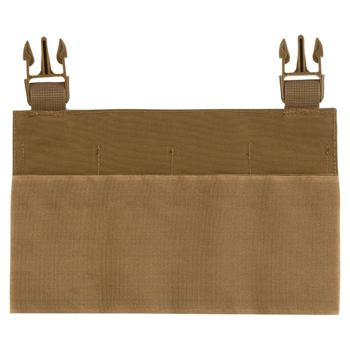 Panneau avant/rabat séparé conçu principalement pour le porte-plaques VX Buckle Up. Avec des poches élastiques solidement cousues pour quatre chargeurs de mitraillette (H&K MP5, CZ Scorpion EVO 3, GP Stribog, etc.). Convient si vous souhaitez alterner différents rabats pour différentes armes ou situations sur un même gilet. Peut également être utilisé sur des gilets d'autres fabricants si l'écartement des boucles Fastex est identique.