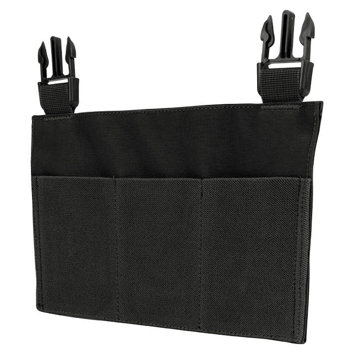 Panneau avant/rabat séparé conçu principalement pour le porte-plaques VX Buckle Up. Avec des poches élastiques solidement cousues pour quatre chargeurs de mitraillette (H&K MP5, CZ Scorpion EVO 3, GP Stribog, etc.). Convient si vous souhaitez alterner différents rabats pour différentes armes ou situations sur un même gilet. Peut également être utilisé sur des gilets d'autres fabricants si l'écartement des boucles Fastex est identique.