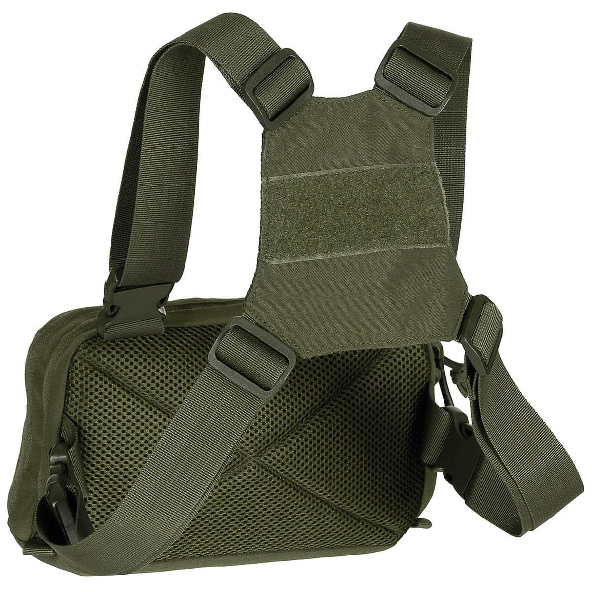 Poche poitrine avec système de portage sur les épaules, peut également être portée sous un sac à dos grâce à ses sangles plates, accès facile à l'équipement.