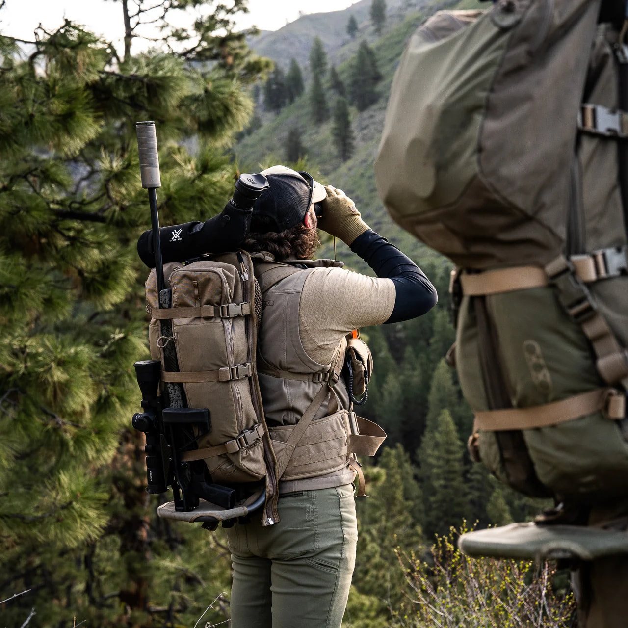 Poche supplémentaire pratique, au design minimaliste et compatible avec le système EMOD de la marque EBERLESTOCK. Elle sert principalement à s'intégrer au cadre porteur MAINFRAME. La poche a un volume d'environ 11,5 litres et est fabriquée en nylon résistant. Des deux côtés, vous trouverez des fermetures éclair permettant de la fixer au MAINFRAME. Il est également possible de relier deux poches BATWING entre elles pour créer un espace de rangement pratique pour le matériel de chasse, etc. Sur la face avant se trouve une poche plate fermée par une fermeture éclair. L'espace de rangement principal est accessible par une fermeture éclair à double sens avec de solides tirettes. L'intérieur du rabat est équipé d'une poche et d'un compartiment élastique. À l'intérieur de la poche, une boucle en plastique permet de fixer une poche à eau d'une capacité maximale de deux litres.