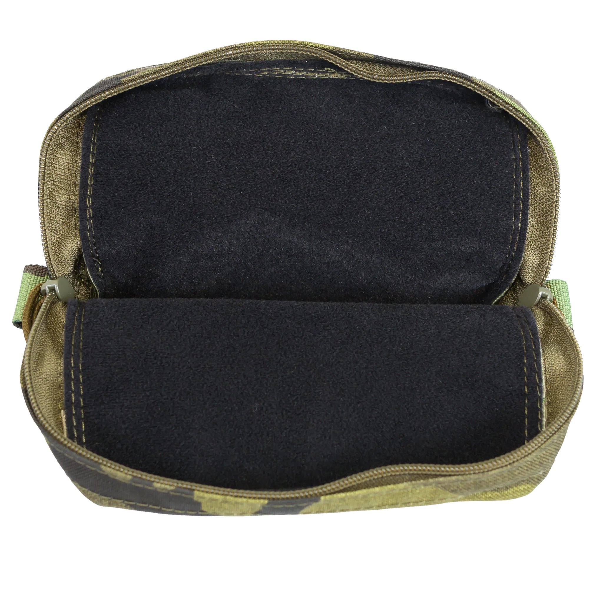 Poche universelle légère qui vous permet d'organiser facilement et rapidement votre équipement. Grâce à son interface MOLLE/PALS à l'arrière, la poche peut être fixée à des ceintures de combat, des sacs à dos, des gilets tactiques et d'autres équipements compatibles. L'intérieur de la pochette est accessible grâce à une fermeture éclair à double sens avec boutons-pression. À l'intérieur, vous trouverez un molleton doux destiné à la fixation d'organiseurs et d'inserts supplémentaires. Une bande MOLLE/PALS solide de largeur standard est cousue sur la face avant.
