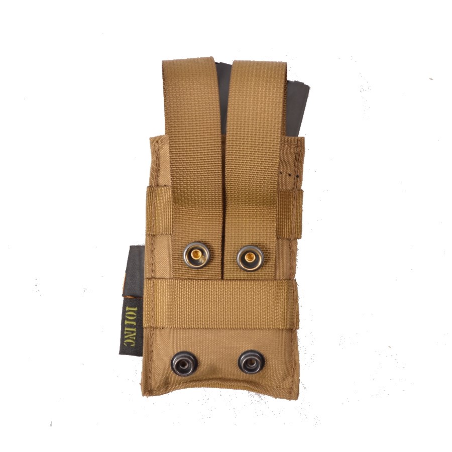 Étui pour chargeur M4 (M16) en matériau élastique. Un côté est en Cordura résistante avec 2 sangles MOLLE et 2 bandes velcro. L'étui peut ainsi être facilement fixé à une veste ou un sac à dos. L'autre côté est en élasthanne, qui maintient fermement le chargeur sans autre fixation afin qu'il ne tombe pas.