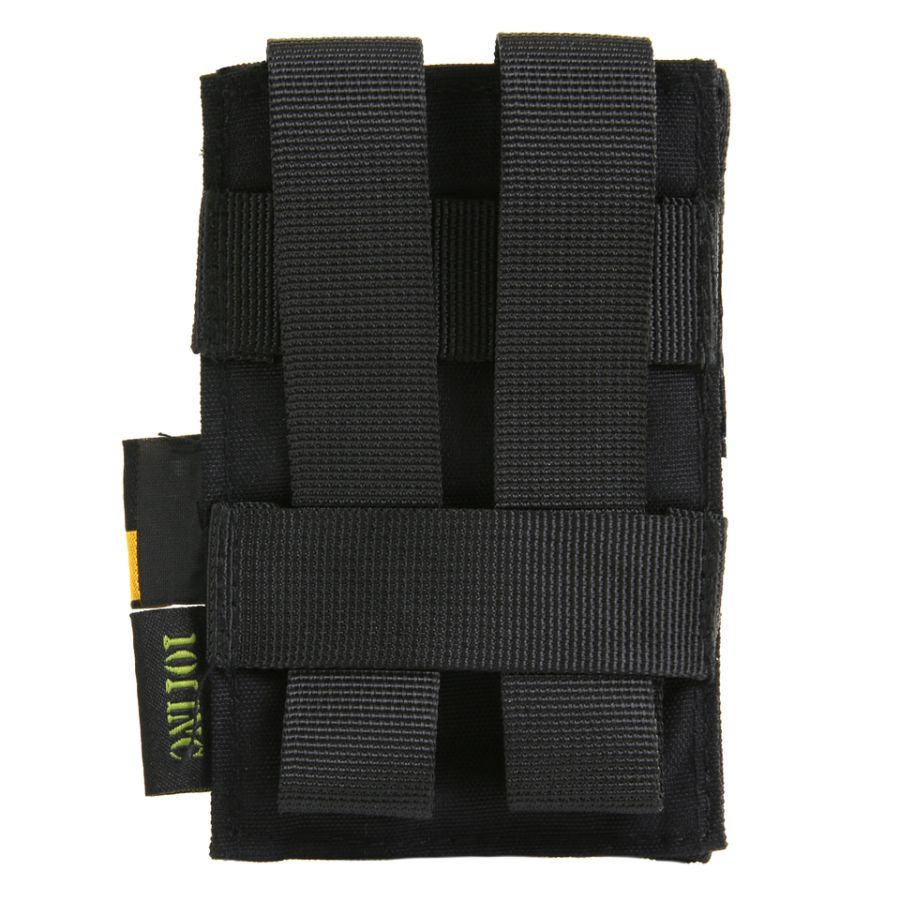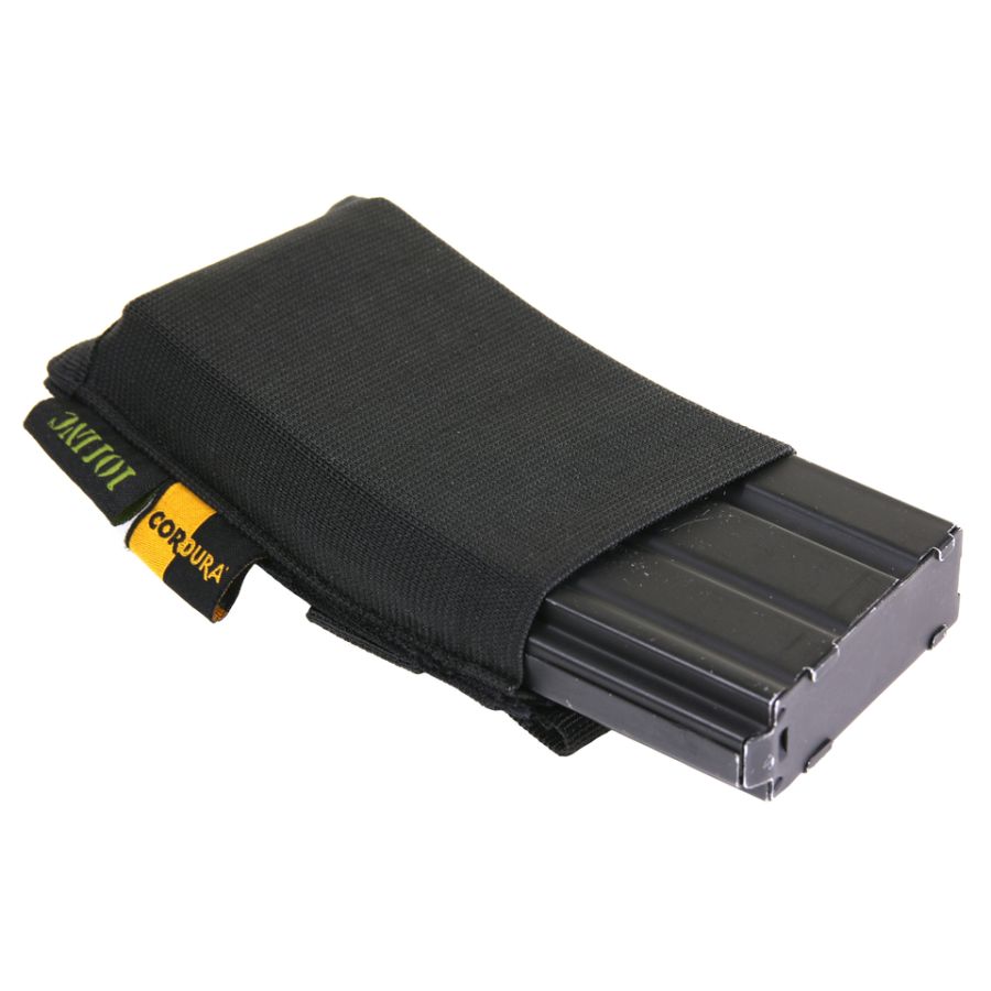 Étui pour chargeur M4 (M16) en matériau élastique. Un côté est en Cordura résistante avec 2 sangles MOLLE et 2 bandes velcro. L'étui peut ainsi être facilement fixé sur une veste ou un sac à dos. L'autre côté est en élasthanne, qui maintient fermement le chargeur sans autre fixation afin qu'il ne tombe pas.