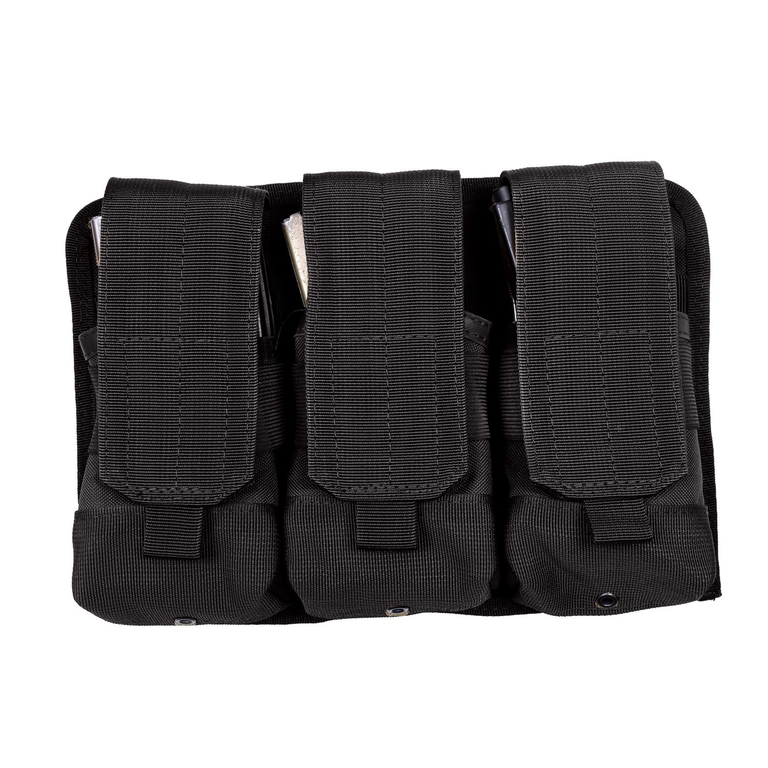 Pochette universelle pour six chargeurs M16 ou trois chargeurs AK-47. La pochette est fabriquée à partir d'une combinaison de polyester 600D et de nylon Cordura 1000D. Les chargeurs sont maintenus en place dans la pochette grâce à des côtés élastiques et un rabat à fermeture velcro. À l'arrière, vous trouverez six sangles compatibles avec le système PALS/MOLLE. Le fond de la pochette est muni d'orifices de drainage.