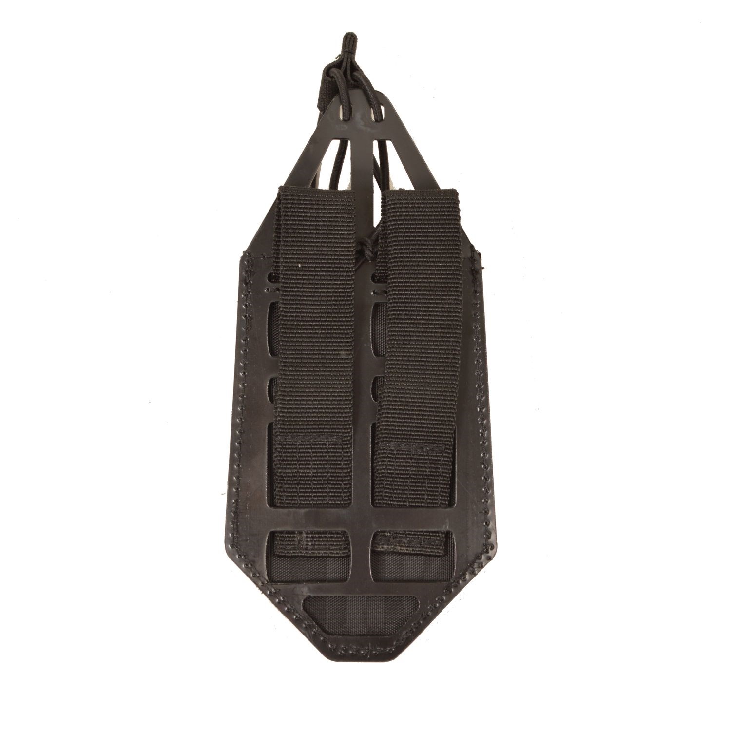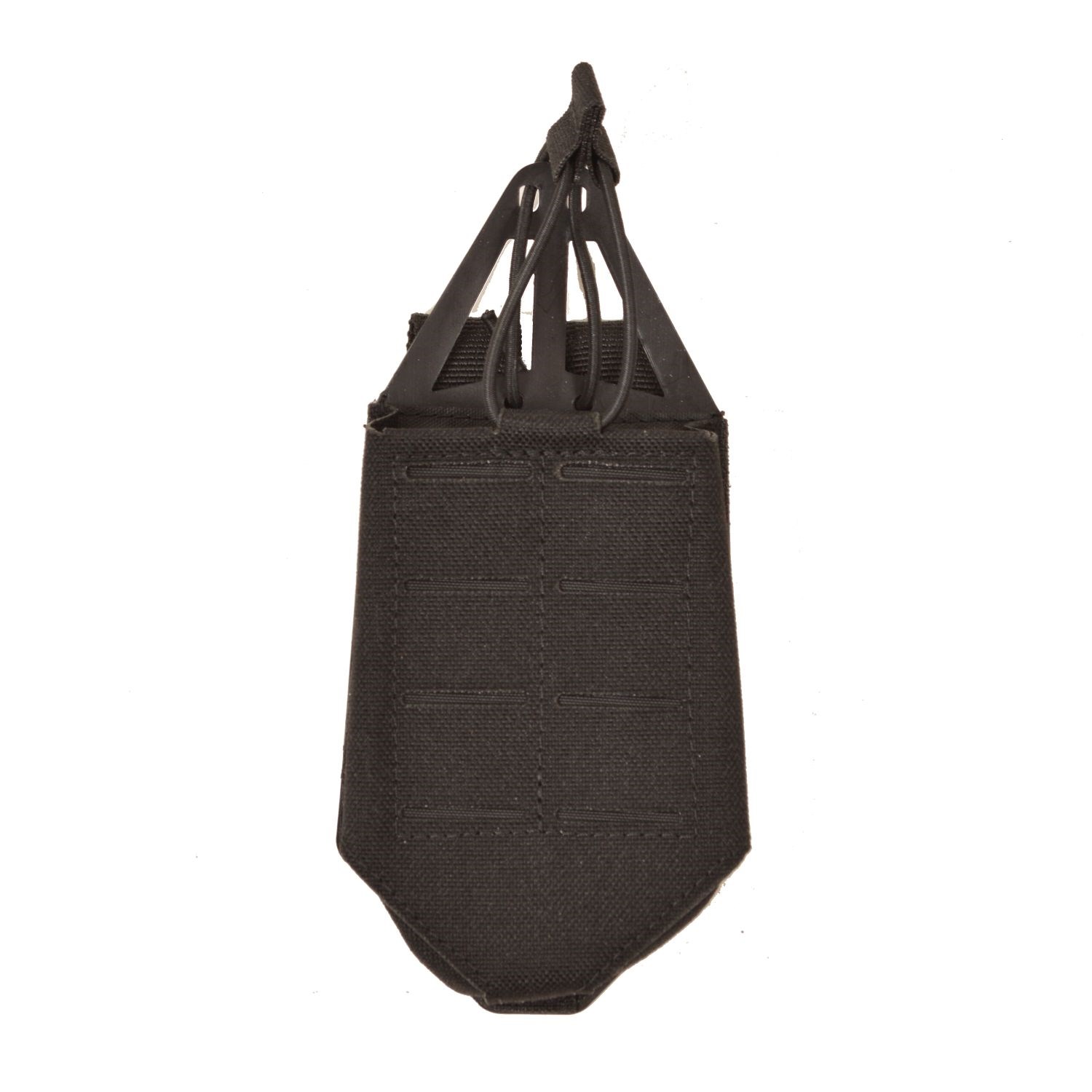 Un cadre en plastique léger en polyéthylène à haute densité est cousu à l'arrière de la pochette. La partie supérieure saillante du cadre comporte des ouvertures permettant de passer un élastique rond avec une boucle servant à fixer le chargeur. Cette solution empêche l'élastique de glisser du bord supérieur du chargeur et évite ainsi que le chargeur ne se détache et ne tombe de l'étui.