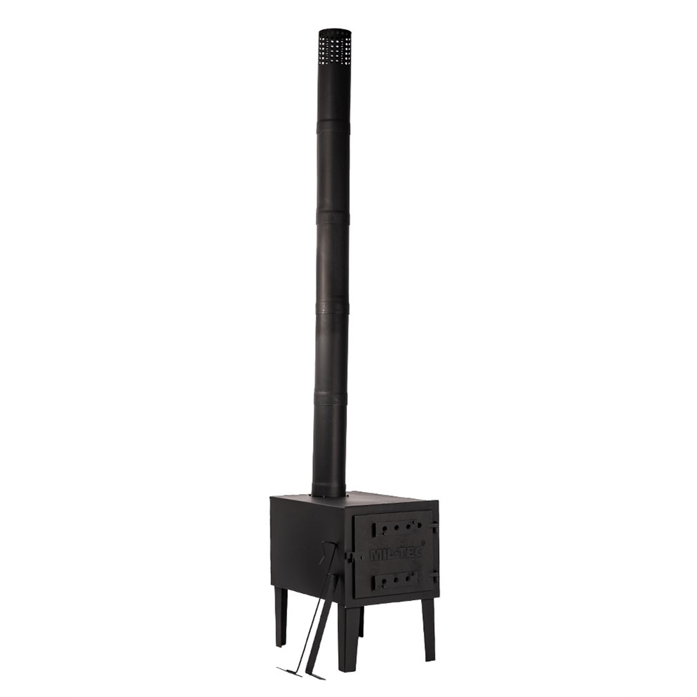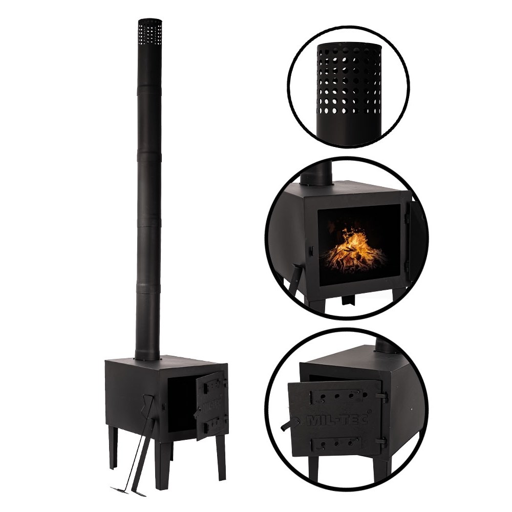 Poêle robuste destiné à une utilisation dans une tente, fonctionnant au combustible solide, dimensions 43,5 x 62,5 x 38 cm. Plus d'informations