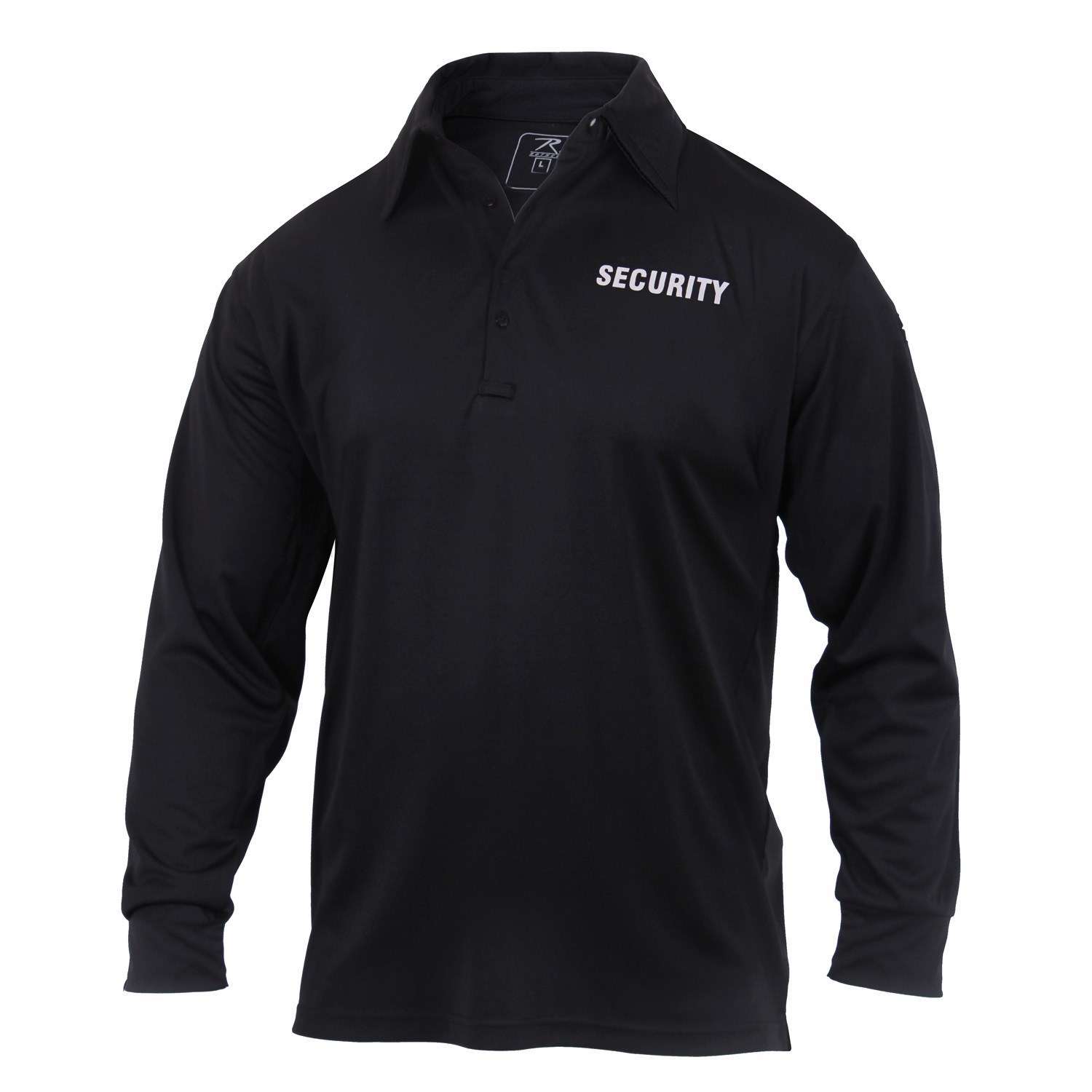 Ce t-shirt de qualité de la marque ROTHCO vous offre un confort optimal même par forte chaleur, grâce à la matière dans laquelle il est confectionné. La matière utilisée sèche rapidement et évacue l'humidité du corps. Le t-shirt présente une coupe standard avec trois boutons à l'encolure. Une petite inscription « security » est imprimée sur la poitrine et la même inscription est imprimée dans le dos. Le t-shirt est principalement destiné aux agences de sécurité. Les poignets sont en matière élastique. Le t-shirt peut être porté sous un uniforme, un gilet ou une veste.