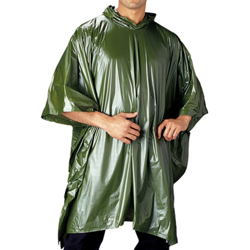 Poncho imperméable léger et compact avec une capuche spacieuse. Idéal en cas d'urgence. Deux ponchos assemblés peuvent servir d'abri d'urgence.