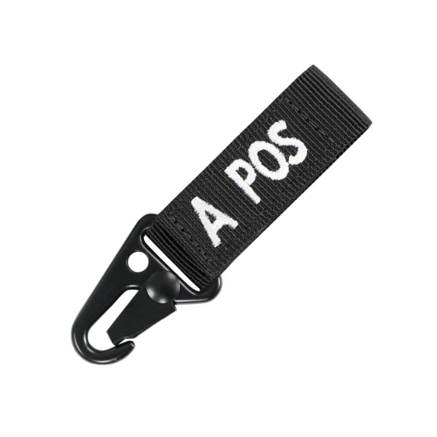 Porte-clés indiquant le groupe sanguin et le facteur RH du porteur. Peut être porté à la ceinture, au PALS, aux clés ou à de nombreux autres objets. Se fixe à l'aide d'une attache métallique de type « crocodile » ou en l'enfilant. Largeur de l'œillet : 5 cm.