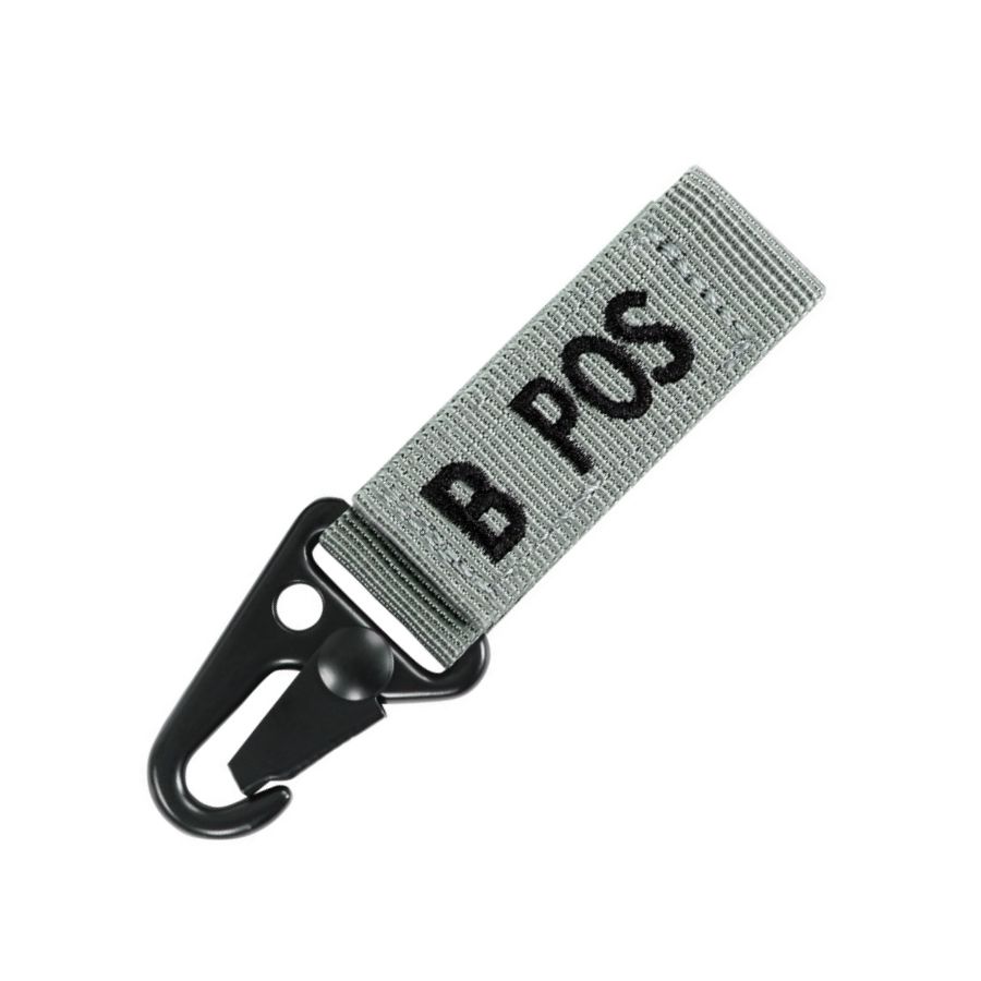Porte-clés indiquant le groupe sanguin et le facteur RH du porteur. Peut être porté à la ceinture, au PALS, aux clés ou à de nombreux autres objets. Se fixe à l'aide d'une attache métallique de type « crocodile » ou en l'enfilant. Largeur de l'œillet : 5 cm.