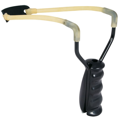 Une fronde simple. Fourche métallique d'un diamètre de 6 mm. Caoutchouc creux.