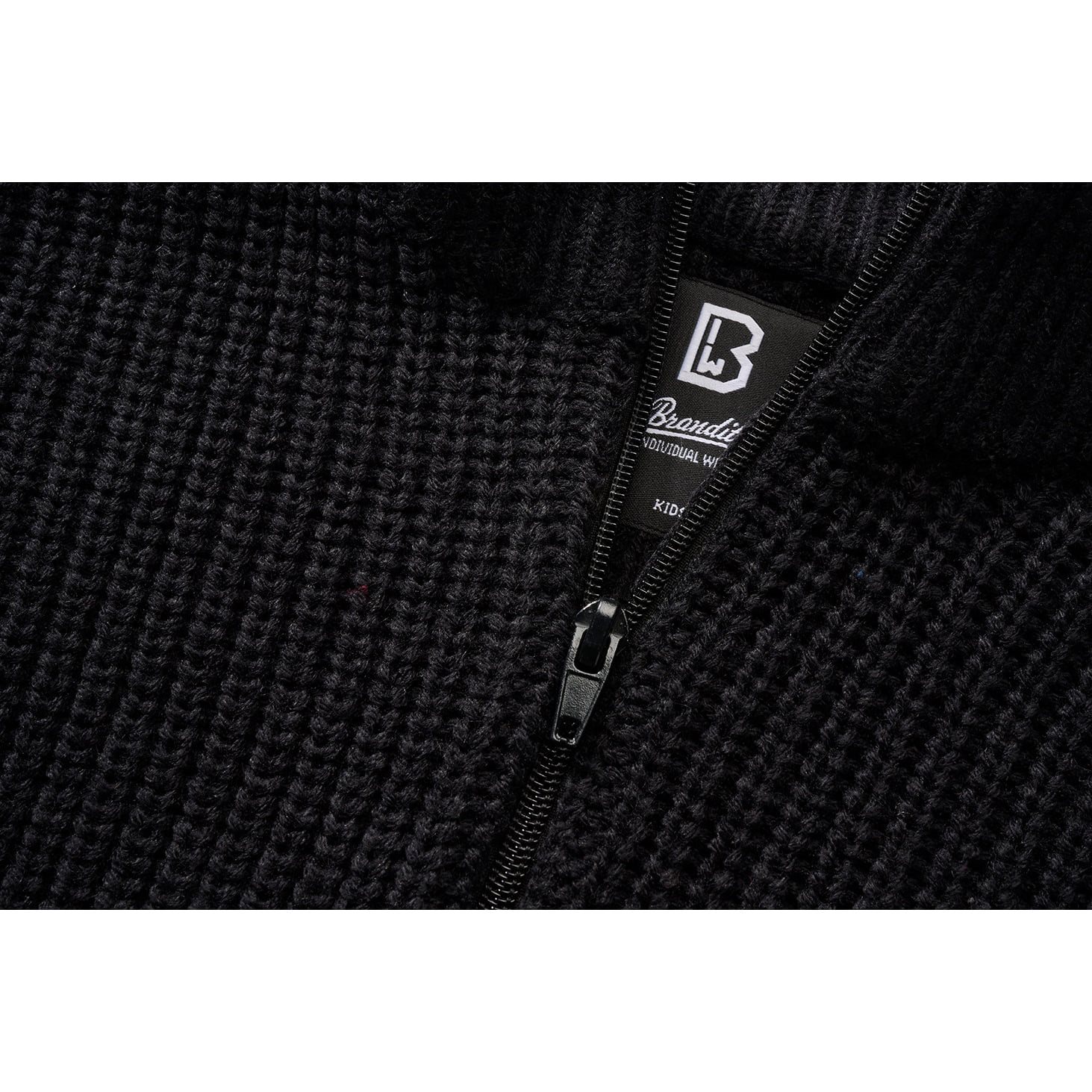 Pull enfant confortable et chaud en maille acrylique. Le pull présente un tricot en relief au niveau des poignets et de l'ourlet inférieur. Le col extra chaud est rehaussé et se ferme à l'aide d'une fermeture éclair. Plus d'informations