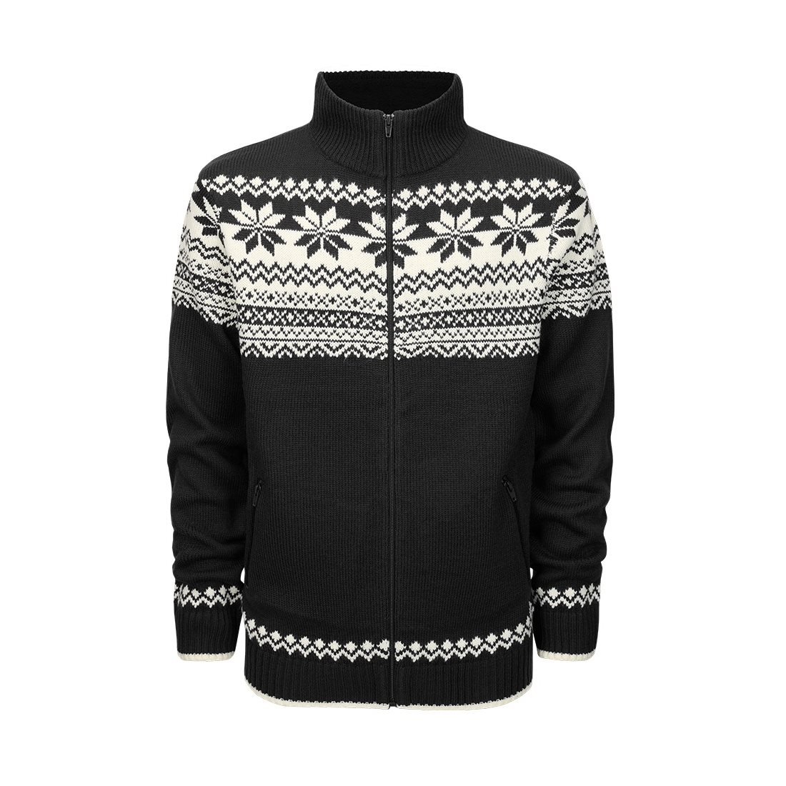 Pull élégant au look scandinave classique. Ce pull est confectionné dans une matière chaude et douce au toucher, avec une doublure polaire douce au niveau du col. Il se ferme à l'aide d'une longue fermeture éclair métallique. Les poches sont également fermées par une fermeture éclair. Les manches, le bas et le col du pull sont bordés d'un tricot élastique.