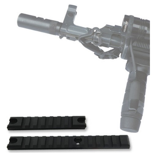 RAIL standard OTAN conçu pour la fixation d'autres accessoires possibles sur l'arme. Le duralumin trempé de type 6061 garantit une résistance élevée, une grande ténacité et une résistance à l'oxydation (même dans l'eau salée). Il peut être fixé sur différentes armes, par exemple sur le fusil automatique Sa 58 ou l'AK-47, ce qui augmente considérablement sa valeur au combat. Longueur : 1 pièce 155 mm, largeur 21 mm, hauteur 9 mm, poids 56 g 2 pièces 98 mm, largeur 21 mm, hauteur 9 mm, poids 38 g