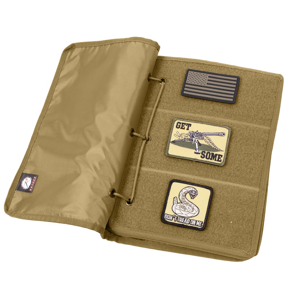 Organiseur pour écussons avec dix pages à fermeture velcro. Dimensions : environ 21,5 x 29,8 cm. Plus d'informations
