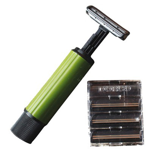 Vous pouvez transporter le rasoir dans vos poches, dans votre sac à dos, votre sacoche, etc., sans craindre qu'il ne vous blesse ou ne s'abîme. En tournant la partie inférieure dans le sens inverse des aiguilles d'une montre, le rasoir se déplie et la lame se met en position horizontale. En tournant la partie inférieure, la lame se replie en position verticale et se range dans le corps du rasoir.