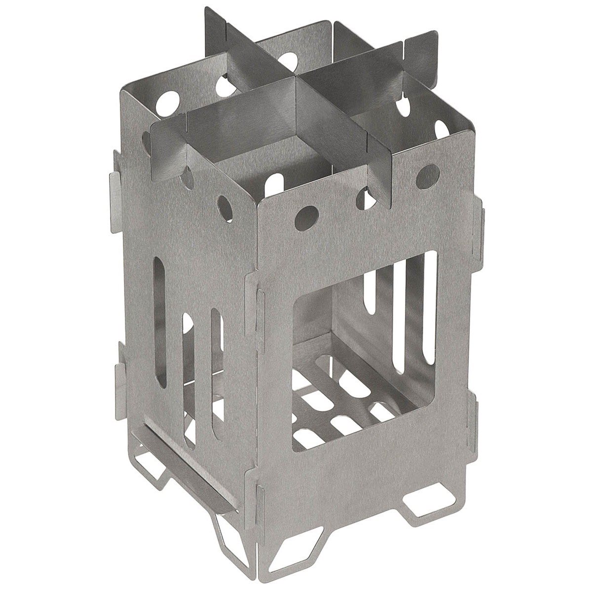 Réchaud d'extérieur de grande taille adapté aux combustibles solides. Une fois démonté, il occupe un minimum d'espace et son assemblage est rapide et facile. Les parois du réchaud sont perforées afin d'assurer une traction maximale dans toutes les situations. Le réchaud est livré avec un étui rigide pour faciliter son transport.