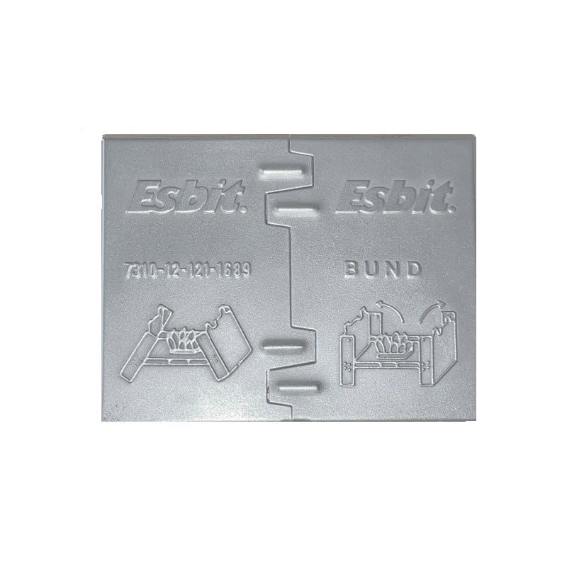 Réchaud à alcool solide utilisé par l'armée allemande Bundeswehr. Produit neuf provenant d'un stock de longue durée.