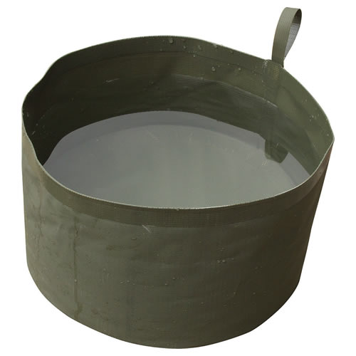 Récipient pliable en PVC pour l'eau. Capacité de 4 l, diamètre de 21 cm, poids de 80 g.