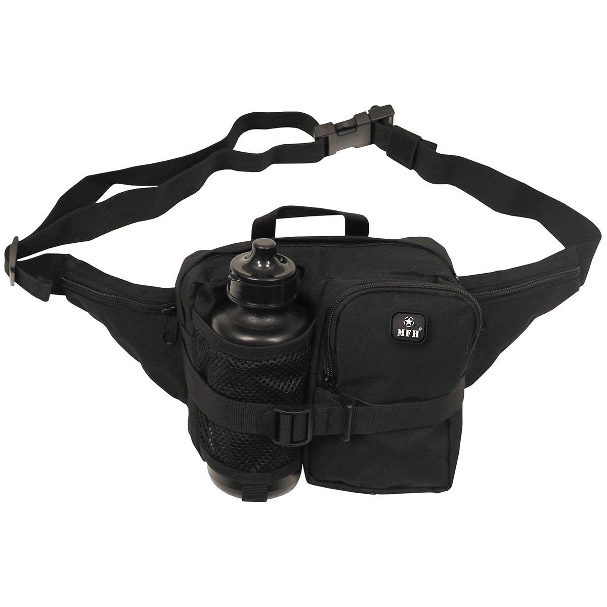 Sac banane pratique avec bouteille. La bouteille est maintenue dans un filet solide et élastique. Le sac banane comporte un grand compartiment et une petite poche. Dimensions : environ 23 cm x 19 cm. Matériau : 100 % polyester. Plus d'informations
