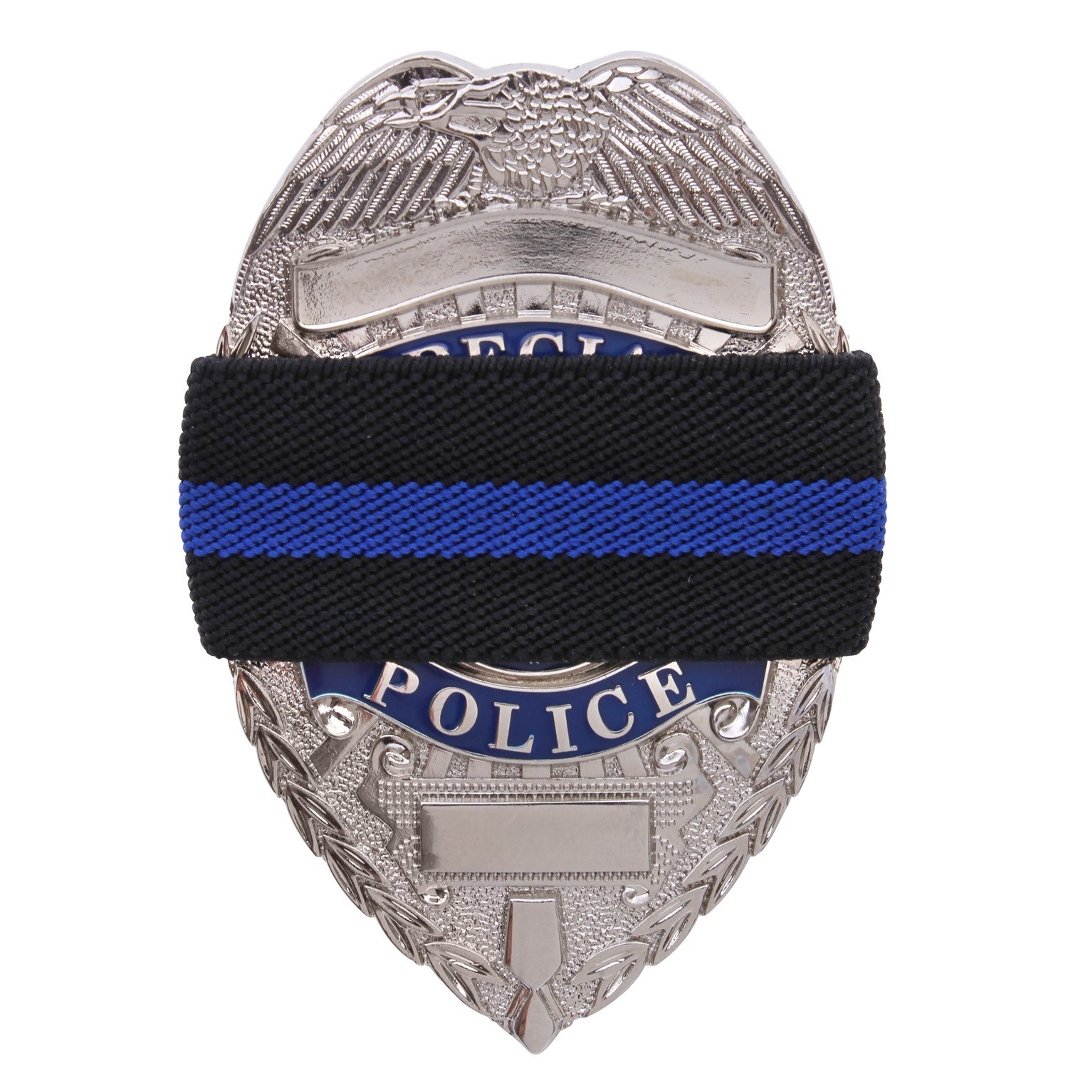 Ruban de deuil avec une ligne bleue symbolisant le soutien, l'estime et le respect envers les membres de la police. Dans cette version, le ruban de deuil est plutôt destiné à la famille du défunt. Largeur 22,2 mm, circonférence 108 mm. Plus d'informations