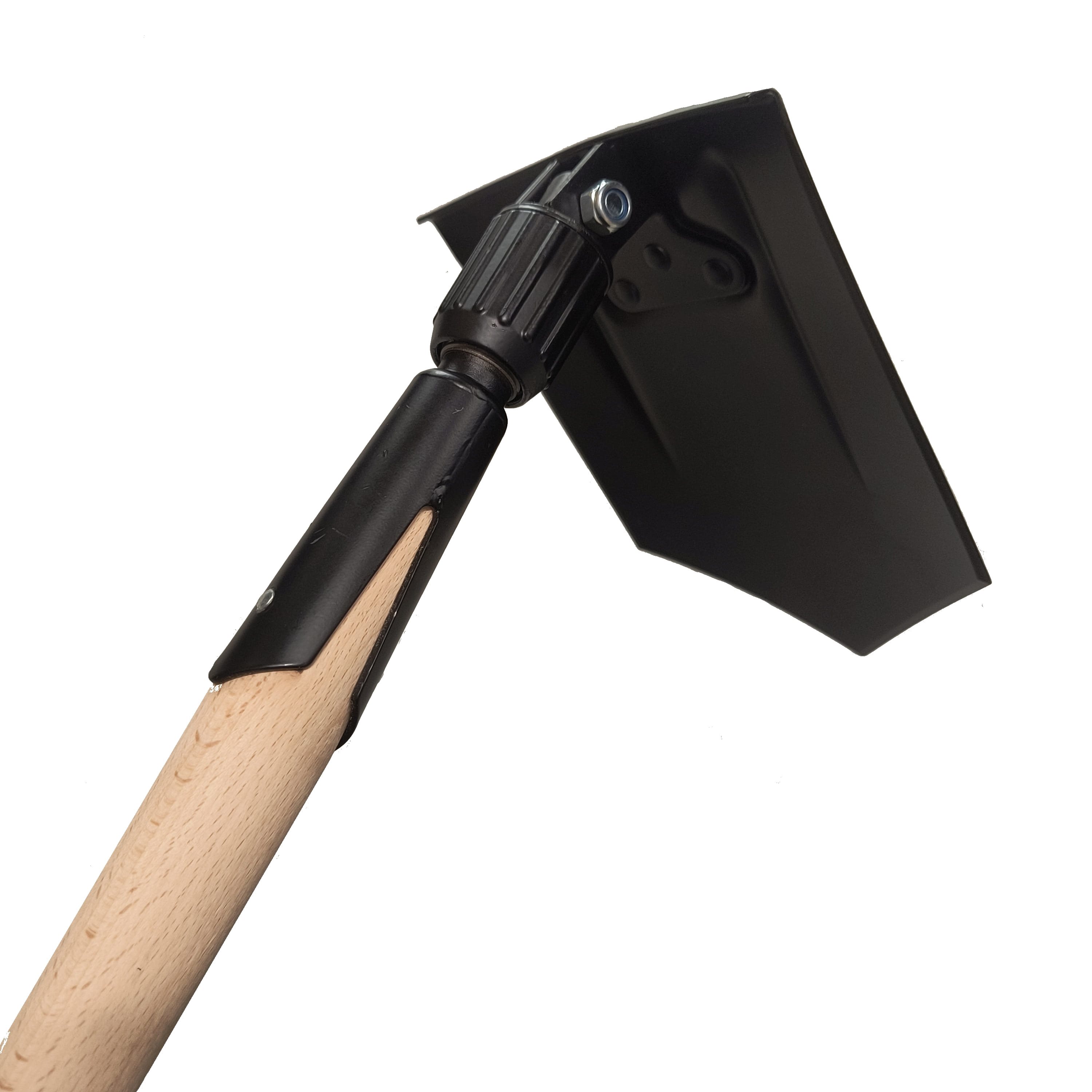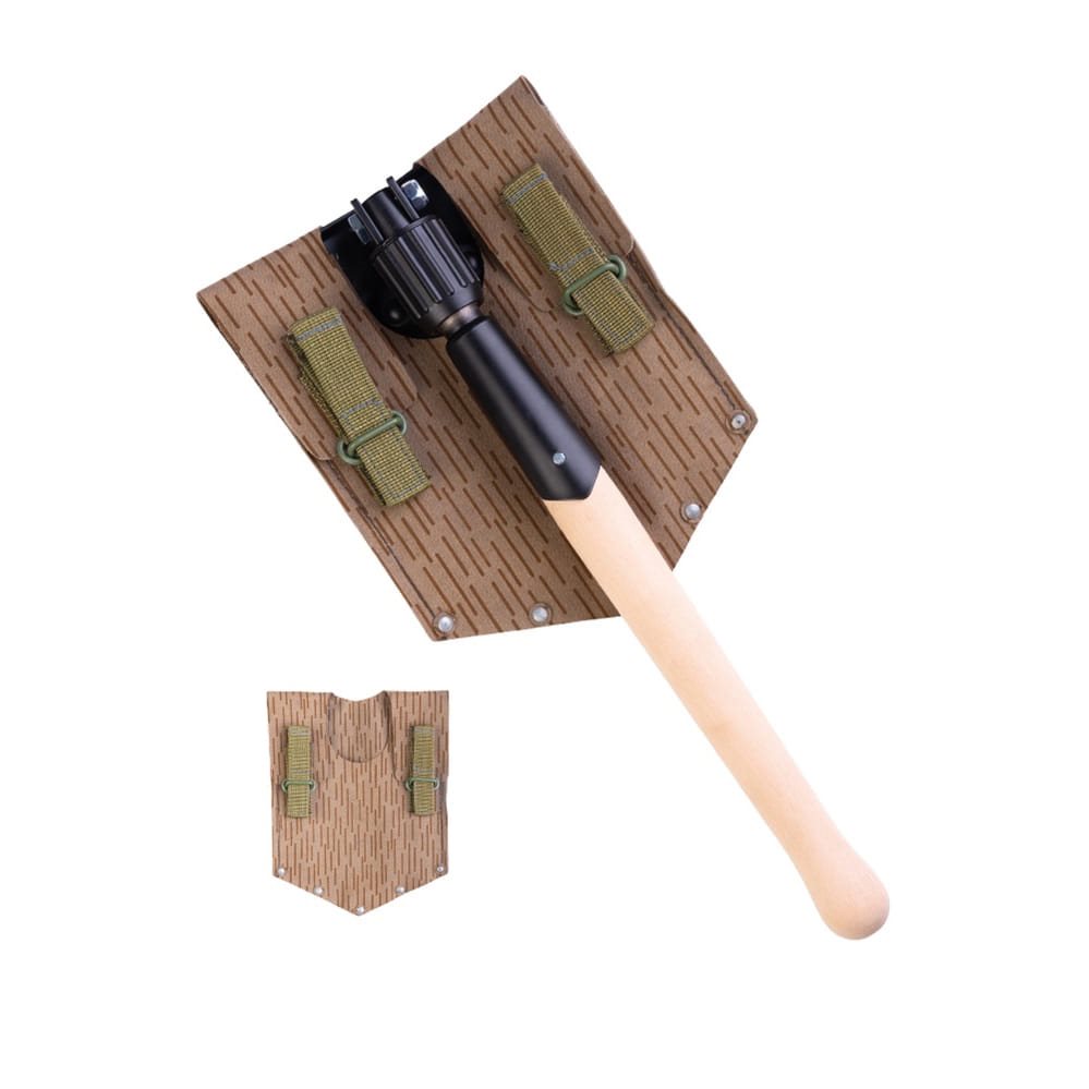 Reproduction très réussie d'une pelle pliante est-allemande. Elle est utilisée pour les travaux de tranchée et autres, et lorsqu'elle est partiellement repliée, elle sert de houe. La fermeture de l'étui et la suspension peuvent différer de la photo. Étui avec possibilité de fixation à la ceinture.
