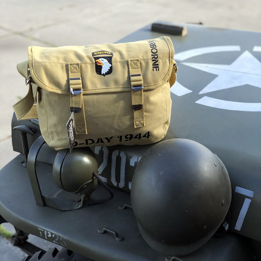 Sac à bandoulière pratique en toile. Imprimé coloré sur le devant - emblème 101st Airborne et inscriptions Airborne et D-DAY 1944. Bandoulière réglable jusqu'à 125 cm. Dimensions - 32 x 12 x 24 cm. Matériau - 100 % coton. Plus d'informations