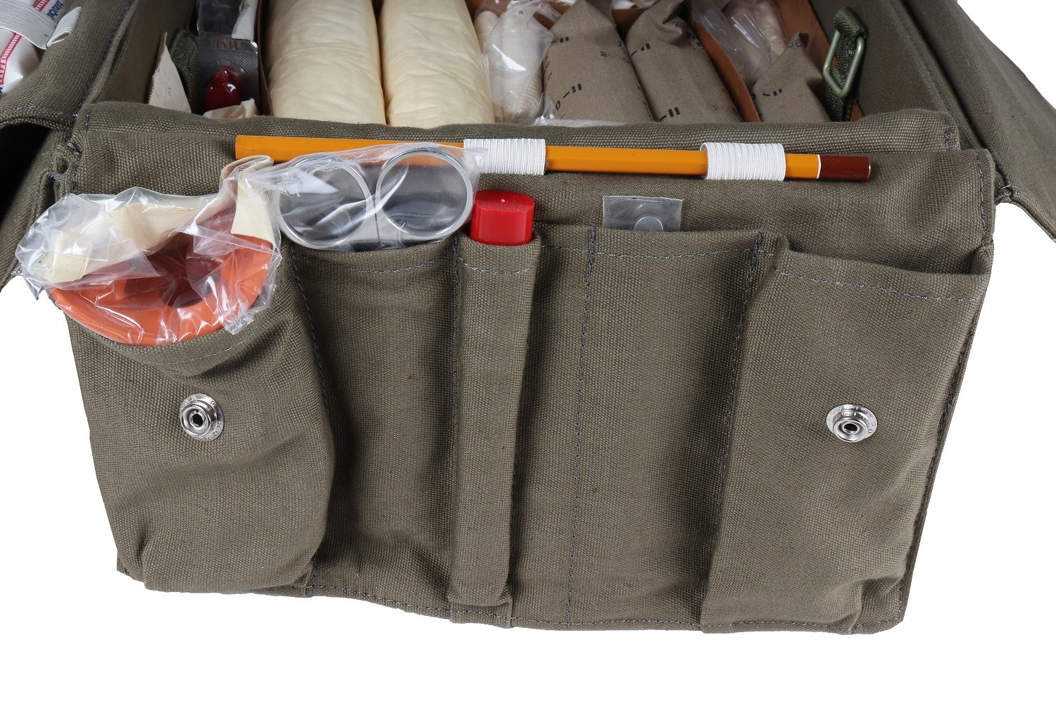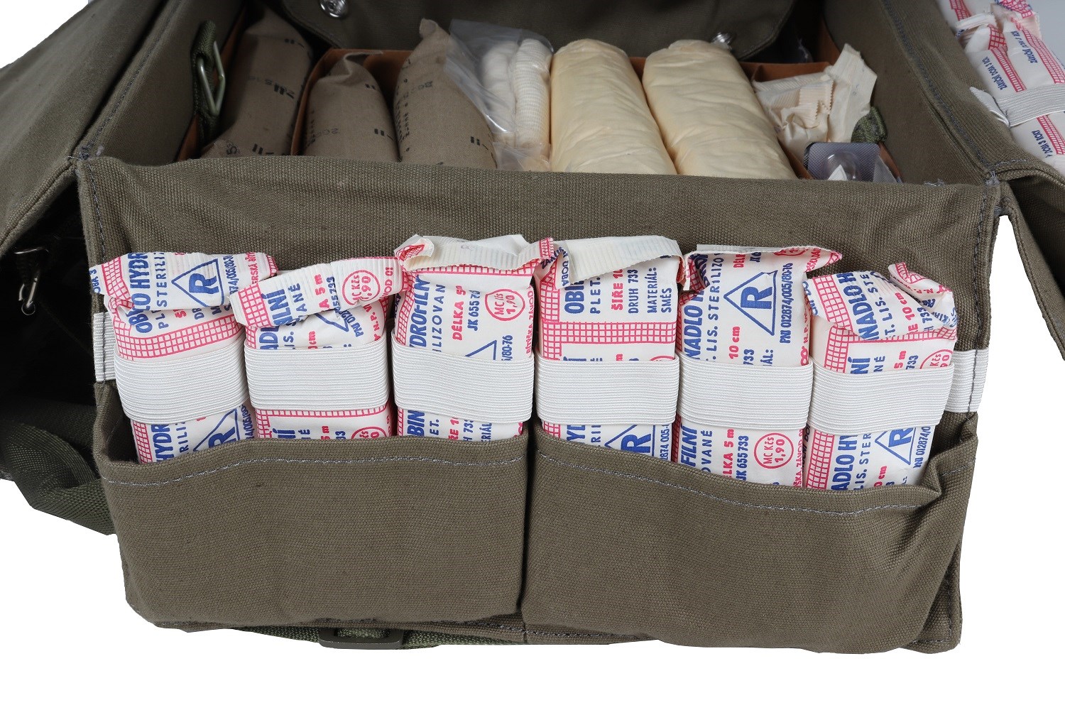 Sacoche médicale solide provenant des soldes de l'armée tchèque. Sacoche médicale idéale pour être remplie de nouveau matériel médical. Elle peut être utilisée par exemple dans des camps ou pour des groupes de personnes qui ont besoin d'avoir une trousse médicale à portée de main.