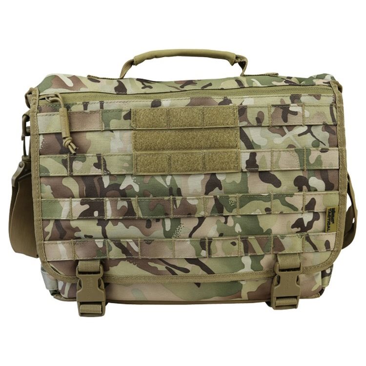 Sac tactique de taille moyenne à porter en bandoulière, avec système MOLLE/PALS à l'avant et à l'arrière. Le rabat de fermeture est muni d'une fermeture éclair qui permet d'accéder à une poche administrative plate et d'un panneau velcro pour fixer des écussons. La bandoulière réglable est rembourrée, ce qui évite toute pression sur l'épaule, même lorsque le sac est lourdement chargé. La bandoulière peut être fixée à l'aide d'un système de sangles. à velcro. La bandoulière réglable est rembourrée, de sorte que même lorsque le sac est lourd, elle ne vous fera pas mal à l'épaule. La bandoulière peut être détachée à l'aide de mousquetons et le sac peut être porté à la main.