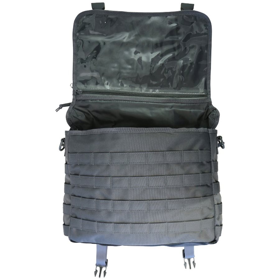 Sac tactique de taille moyenne à porter en bandoulière, avec système MOLLE/PALS à l'avant et à l'arrière. Le rabat de fermeture est muni d'une fermeture éclair qui permet d'accéder à une poche administrative plate et d'un panneau velcro pour fixer des écussons. La bandoulière réglable est rembourrée, ce qui évite toute pression sur l'épaule, même lorsque le sac est lourdement chargé. La bandoulière peut être fixée à l'aide d'un système de sangles. à velcro. La bandoulière réglable est rembourrée, de sorte que même lorsque le sac est lourd, elle ne vous fera pas mal à l'épaule. La bandoulière peut être détachée à l'aide de mousquetons et le sac peut être porté à la main.
