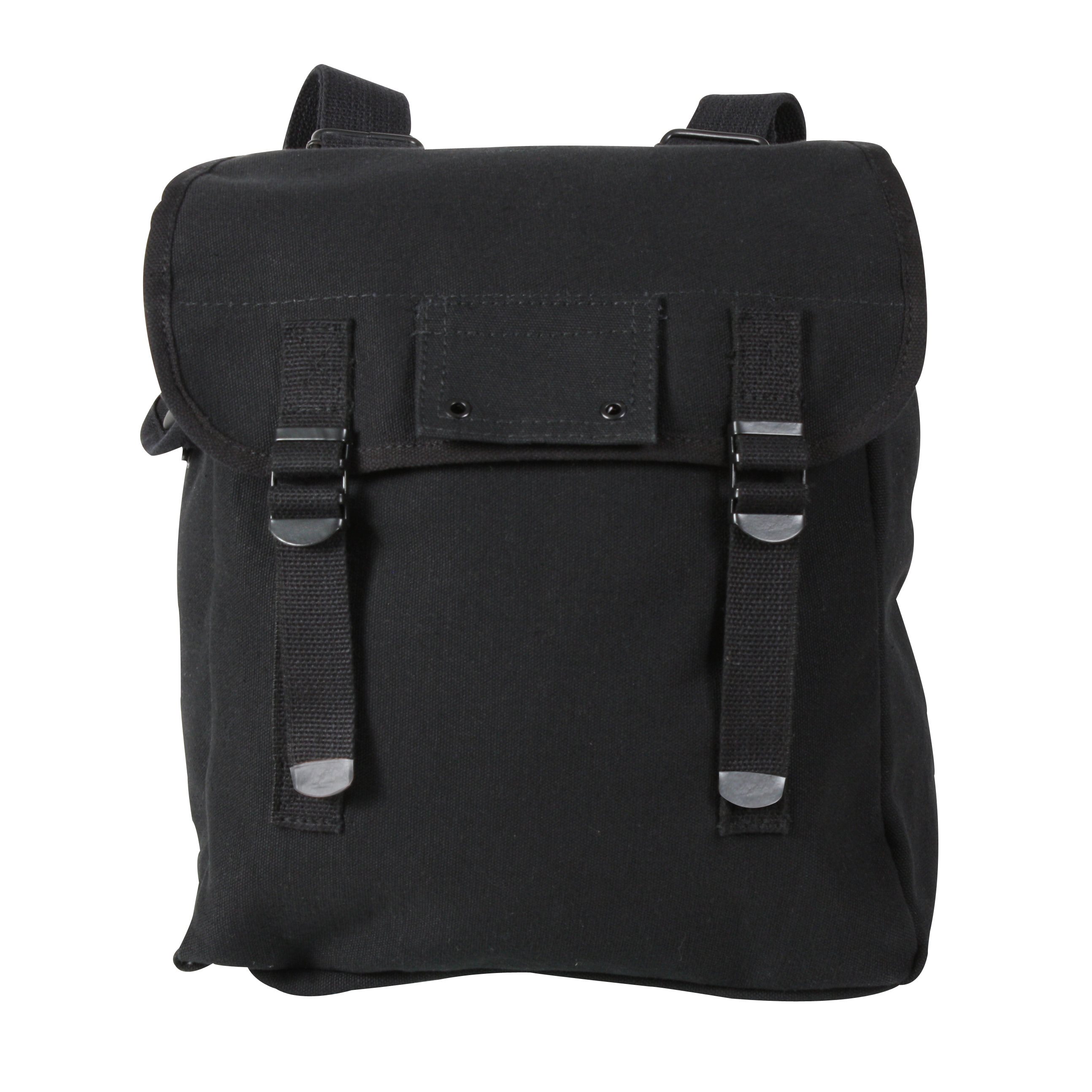Sac polyvalent pouvant être porté à l'épaule ou comme sac à dos. Il est fabriqué en toile de coton épaisse dans un style rétro militaire caractéristique. Fermeture du rabat à l'aide de sangles et de boucles. Les sangles réglables peuvent être attachées pour un port à l'épaule ou fixées aux anneaux en D inférieurs pour un port sur le dos.