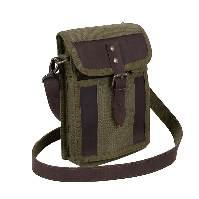 Sac de voyage en toile élégant à porter en bandoulière, avec des accessoires en cuir, idéal pour les documents, les cartes et les petits accessoires.