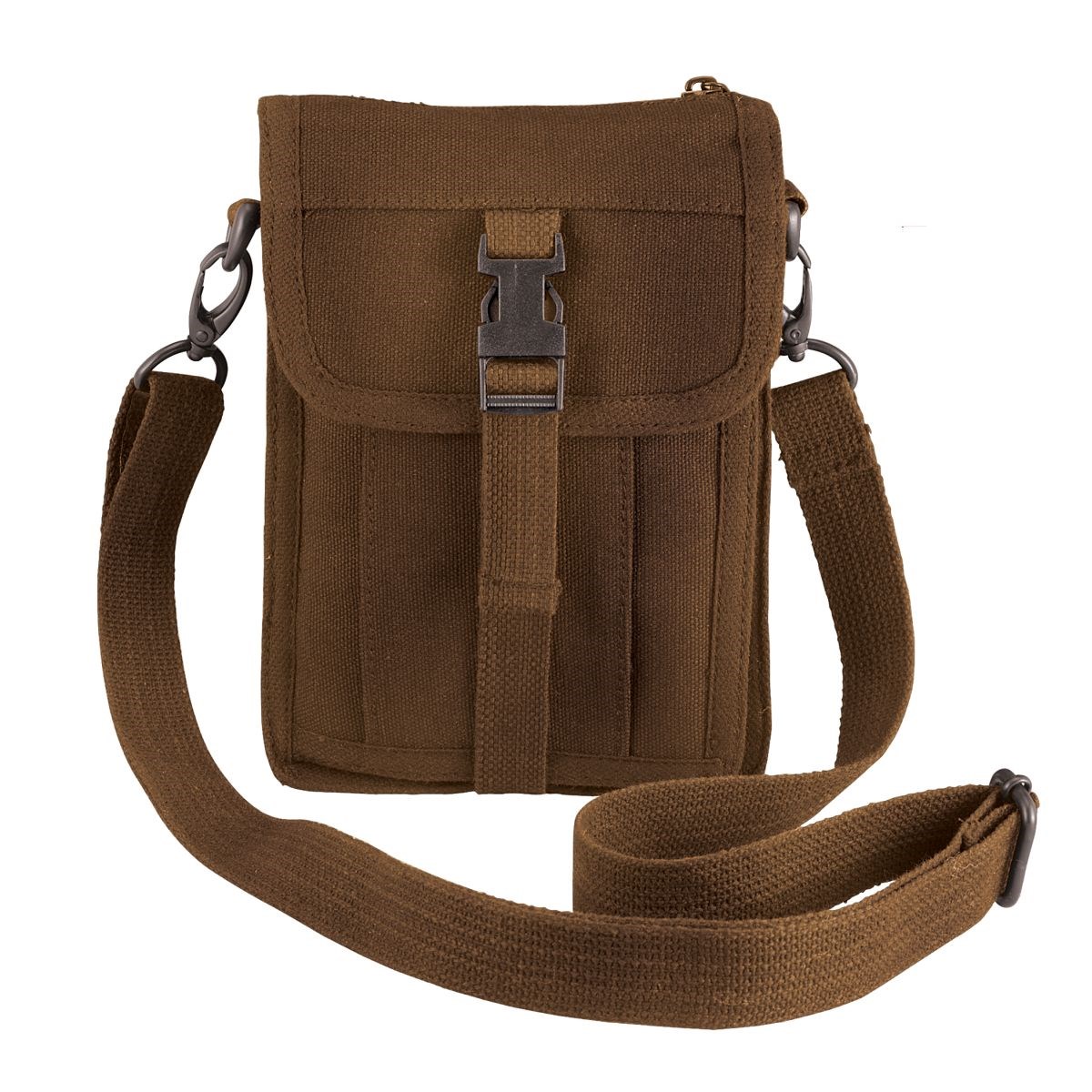 Sac en toile à bandoulière avec de nombreux compartiments et poches.