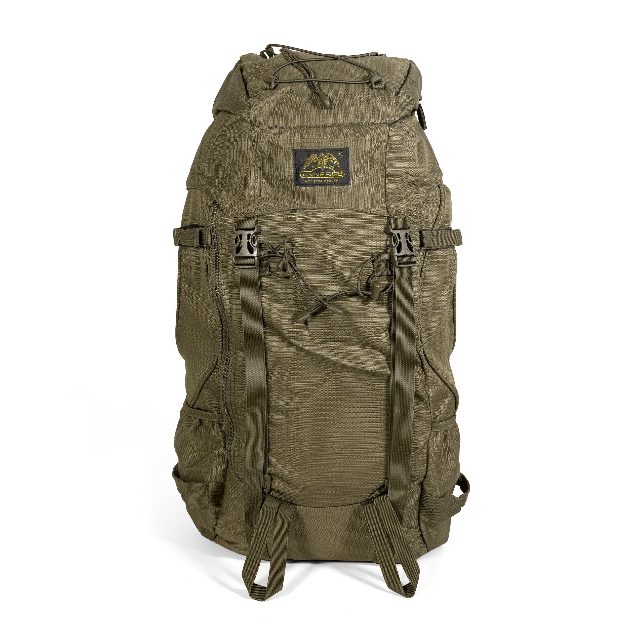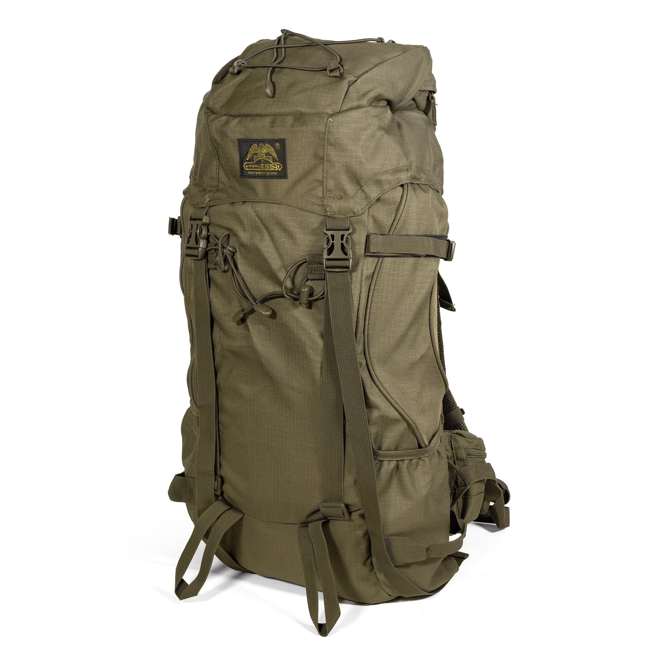 Sac à dos de taille moyenne pour la randonnée ou la chasse. L'accès au sac à dos est assuré par un rabat supérieur avec une poche extérieure et une poche intérieure à fermeture éclair. La poche extérieure est également équipée d'un compartiment en filet fermé par du velcro. Le rabat est muni d'un cordon élastique. À l'intérieur du sac à dos, on trouve une petite poche zippée (par exemple pour un téléphone portable ou des objets de valeur) et un compartiment pour une poche à eau avec une ouverture pour faire passer le tuyau. Le sac à dos dispose d'une grande poche frontale fermée par une fermeture éclair verticale latérale et de deux poches latérales suffisamment spacieuses pour contenir une gourde américaine classique ou une bouteille Nalgene d'un litre. Outre la poignée de transport classique à l'arrière, d'autres poignées sont situées sur les poches latérales et peuvent être utilisées pour accrocher des mousquetons ou pour évacuer un blessé en cas d'urgence. Des sangles de compression latérales et des boucles frontales pour piolets ou bâtons de randonnée permettent de fixer d'autres équipements. Une housse de pluie intégrée se trouve dans la petite poche au fond du sac à dos.